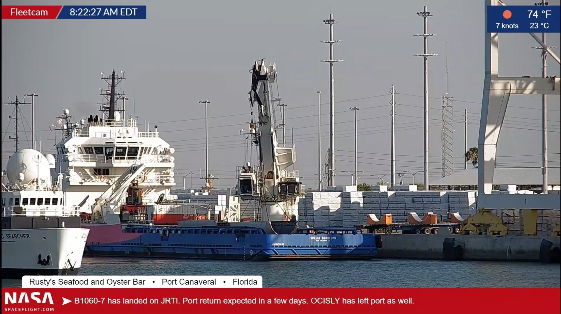 um das etwas genauer auszuführen, die beiden Hälften der Nutzlast-Verkleidung wurden erfolgreich geborgen und in den Hafen zurückgebracht. Dort wurden sie übrigens mittlerweile mittels des Bordkrans entladen. Das Schiff selber ist dann vor wenigen Stunden bereits wieder ausgelaufen, um für die nächste Starlink-Mission in Position zu gehen.