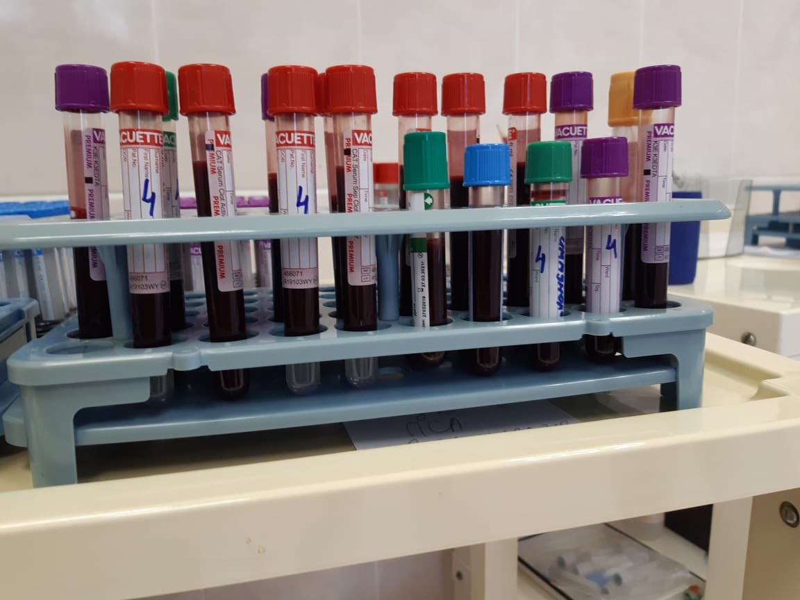 Heute Morgen habe ich Blut für mehrere Experimente gleichzeitig gespendet.