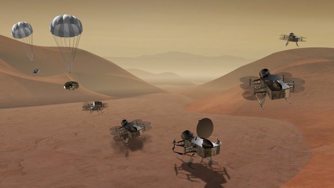 The next @NASASolarSystem mission is… #Dragonfly – a rotorcraft lander mission to Saturn’s largest moon Titan.