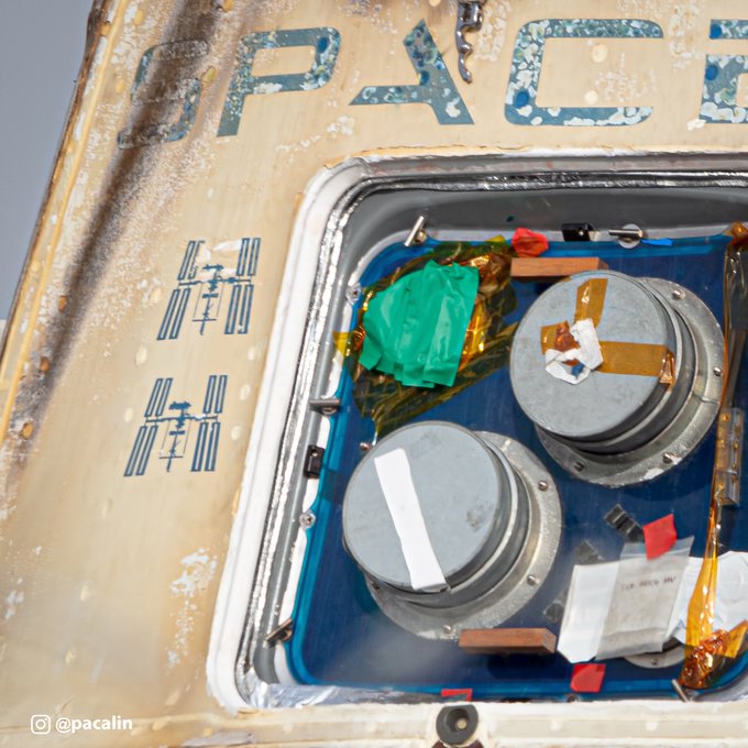 Die ISS Symbole zeigten an, dass diese Kapsel schon zweimal an der ISS war:
