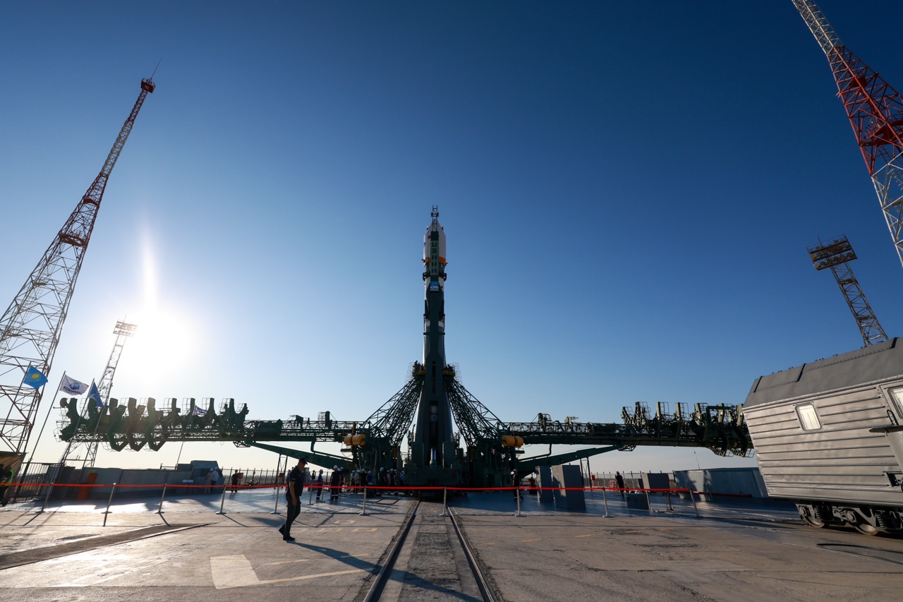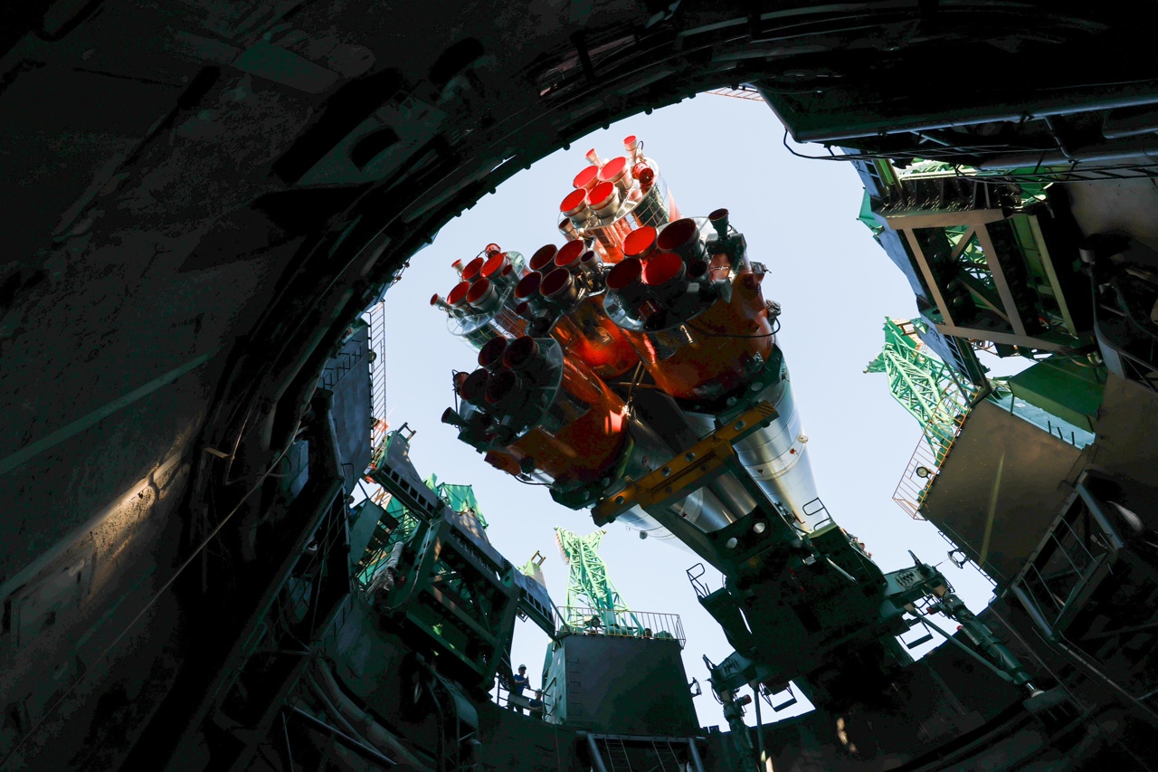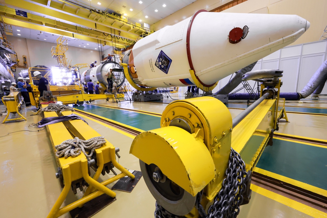 Gestern, am 19.08.2025, wurde im MIK-40 auf dem Pl.31, neben dem Startplatz, die Nutzlast, Bion-Nr.2 mit seiner Beschleunigungsstufe, an die 3. Stufe der Sojus montiert, anschließend erfolgte die Endmontage des"Pakets" auf dem Transport- und Aufricht-Aggregatewagen (TUA).