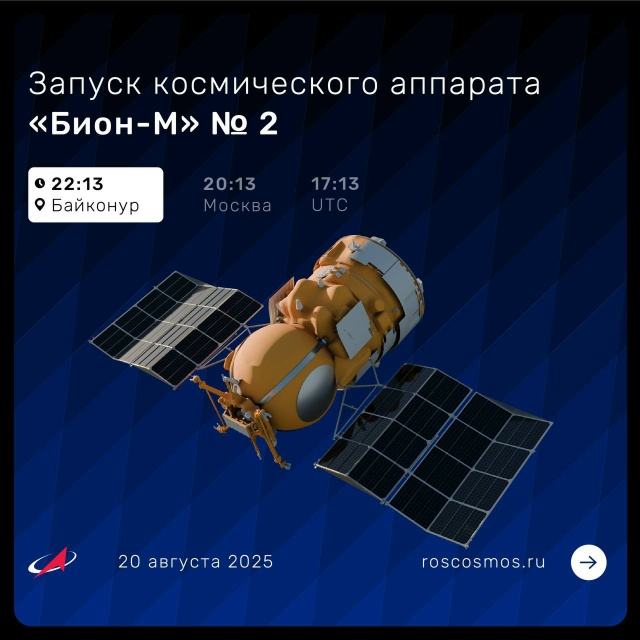 Der Start soll heute, am 20.08.2025 um  20:13 MSK (19:13 MESZ) erfolgen und übertragen werden.