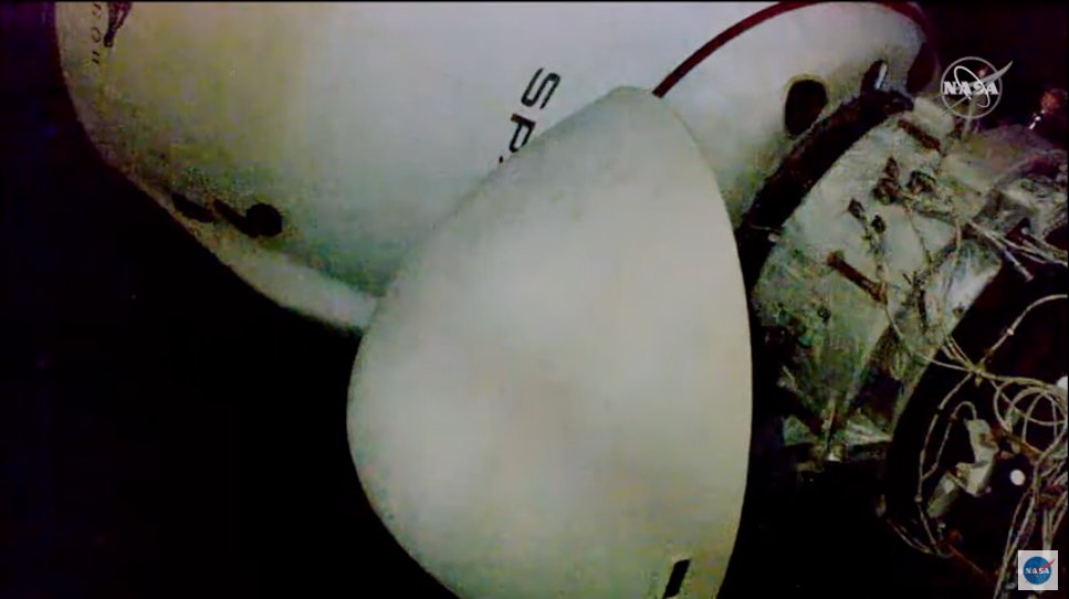 Deorbit-Burn wurde vor wenigen Minuten abgeschlossen, momentan ist man dabei, den Nasenkonus zu schließen...