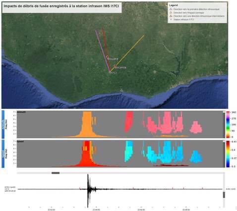 Der Nationale Beratende Rat CTBTO hat mit der #IMS Infraschallstation I17C lvoryCoast (Elfenbeinküste) den Aufprall von Trümmern der gemeldeten Raketen festgestellt, die am 11. Mai 20 in die Atmosphäre eintreten sind. Sowohl seismische Aufprallsignale ~ 60 km von der Station als auch Infraschallsignale von Raketenteilen, die sich mit Überschallgeschwindigkeit durch die Atmosphäre bewegten, wurden aufgezeichnet.