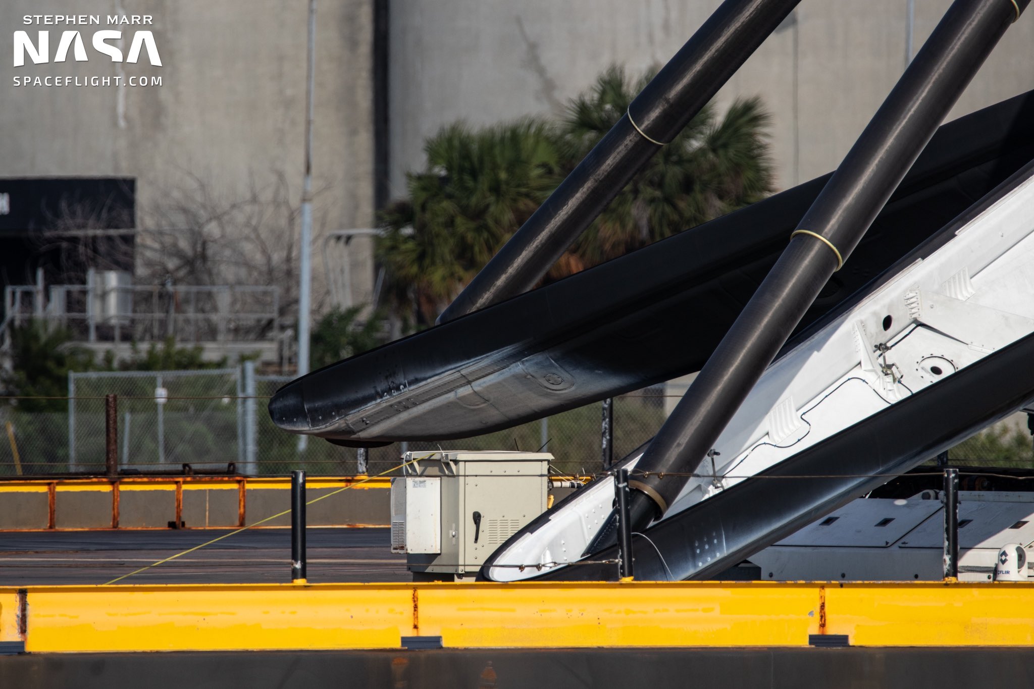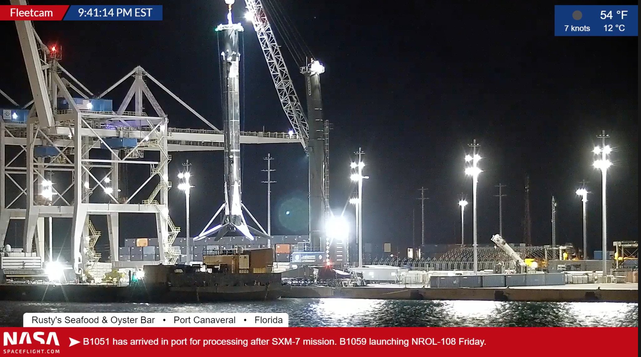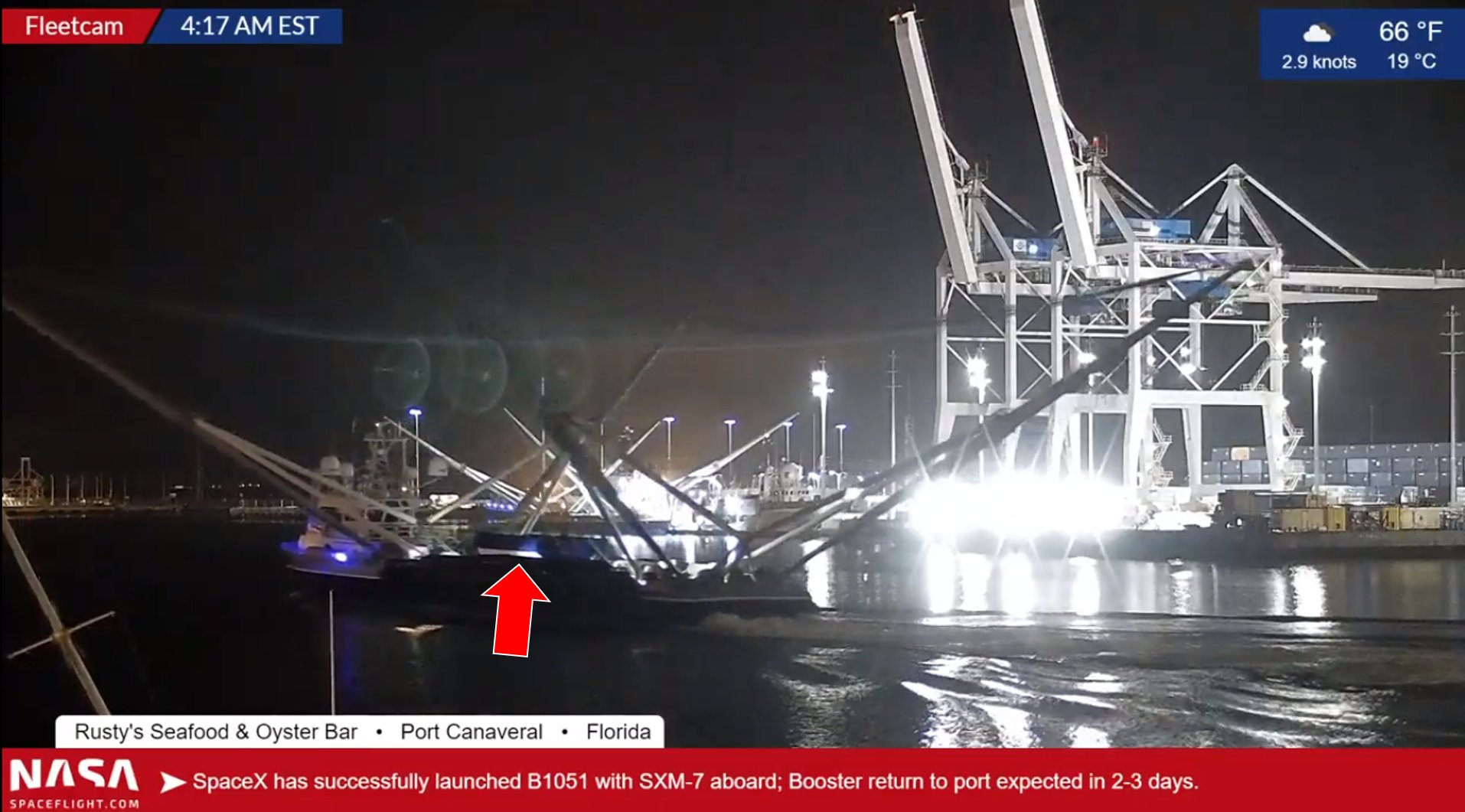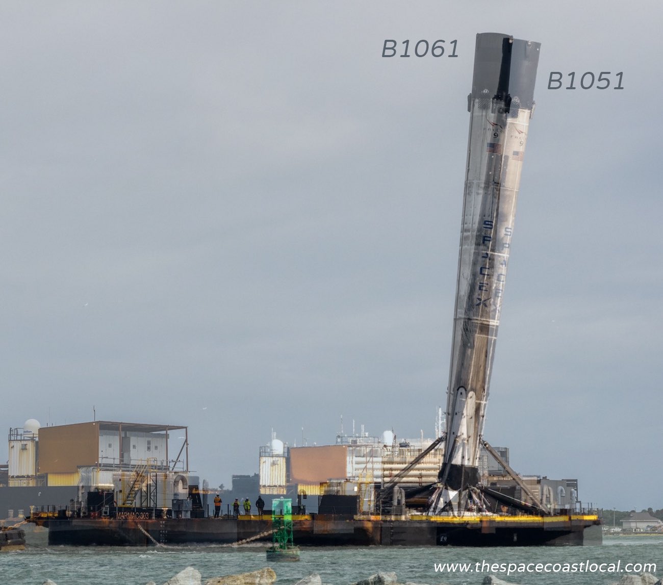 Es ist wohl das erste Mal, dass ein Booster nachts vom Droneship gehoben wurde, früher hatte man wohl als die Arbeiten bei Dunkelheit unterbrochen.