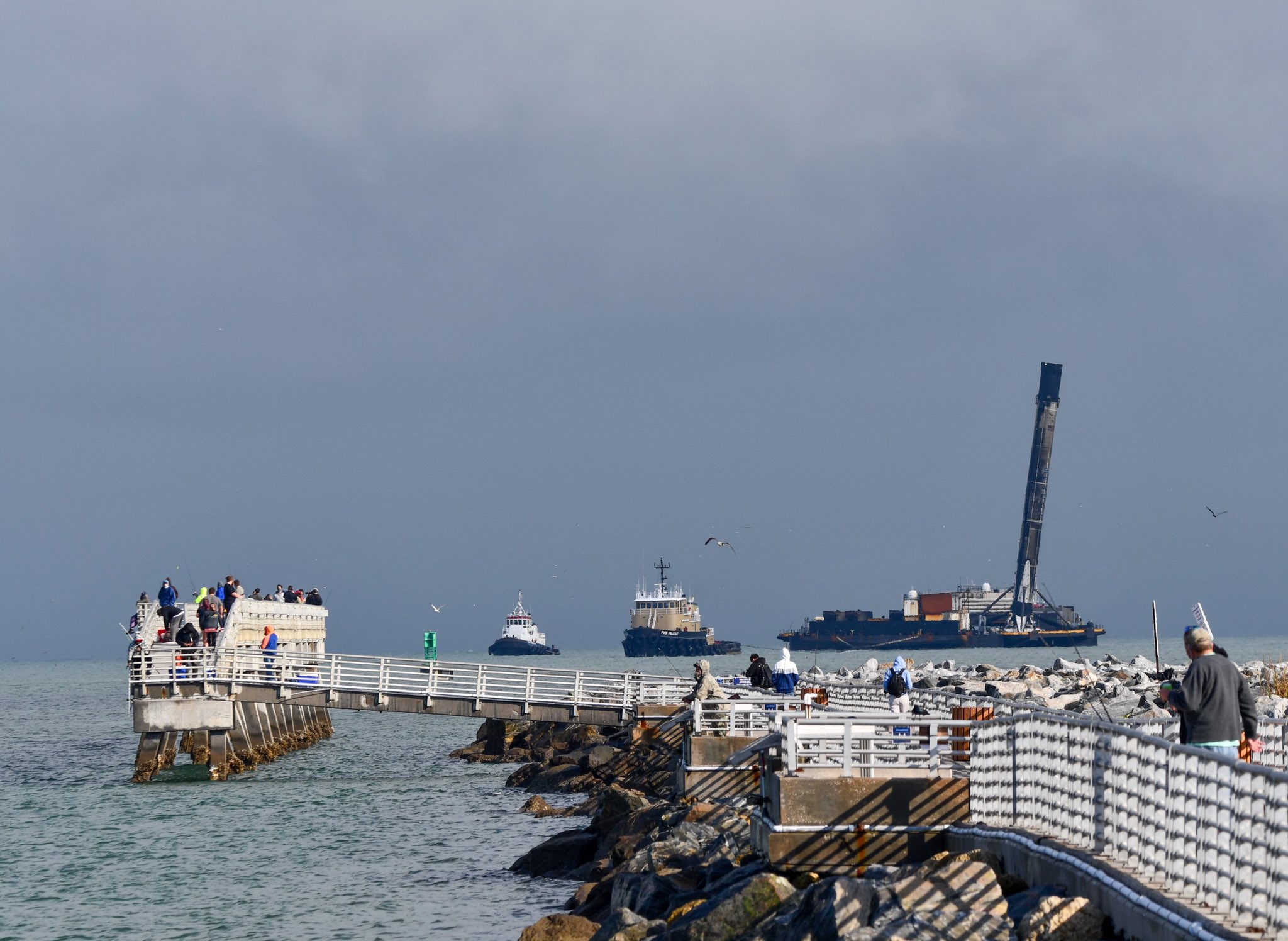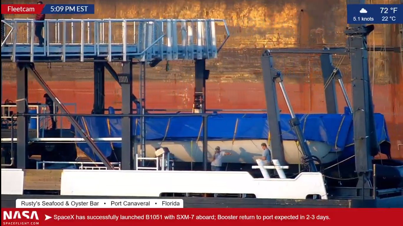 Die erste Hälfte des Fairings ist mittlerweile intakt im Hafen angekommen. GO Searcher wird später heute mit der zweiten Hälfte (oder auch nicht) zurück erwartet.