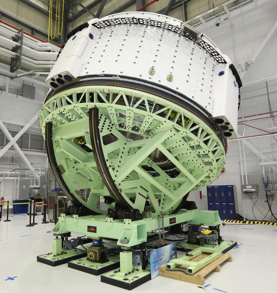 The OFT-2 Starliner spacecraft is nearing final assembly inside the company’s Commercial Crew and Cargo Processing Facility at NASA’s Kennedy Space Center in Florida. The vehicle’s reusable crew module has been powered up and final checkouts of the avionics, power and propulsion systems are nearing completion. The spacecraft’s parachutes, landing airbags, base heat shield, and its back shells are installed signifying the completion of the vehicle build phase. In the coming weeks, teams will load the crew module with cargo, including Rosie the Rocketeer, and weigh the vehicle before mating it to its service module, which is already complete.