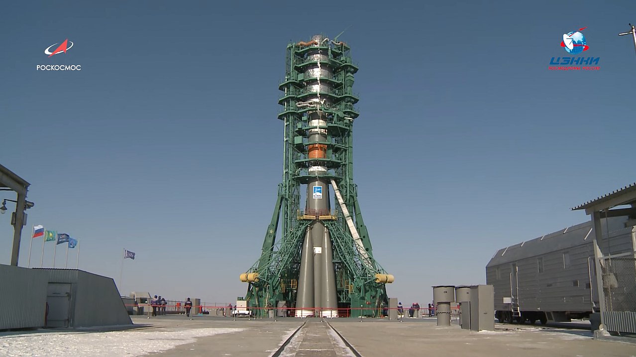 "Erster Starttag" - so wird der Tag des Rollout bei den Russen bezeichnet. Es ist der erste Tag der Startvorbereitung mit dem Herausfahren aus dem MIK und dem Aufrichten der Rakete. Das beginnt auf dem Platz 31 immer 05:30 Uhr MSK (07:30 Uhr MEZ).