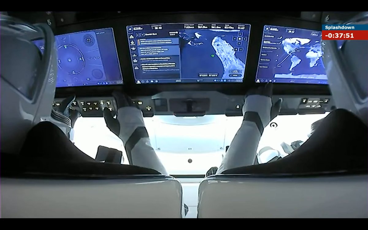 SpaceX bestätigt nominalen Deorbit Burn. Landezeit bleibt 1:06 MESZ. Landezone unmittelbar vor Cape Canaveral. Hier auf dem mittleren Bildschirm gut zu erkennen: