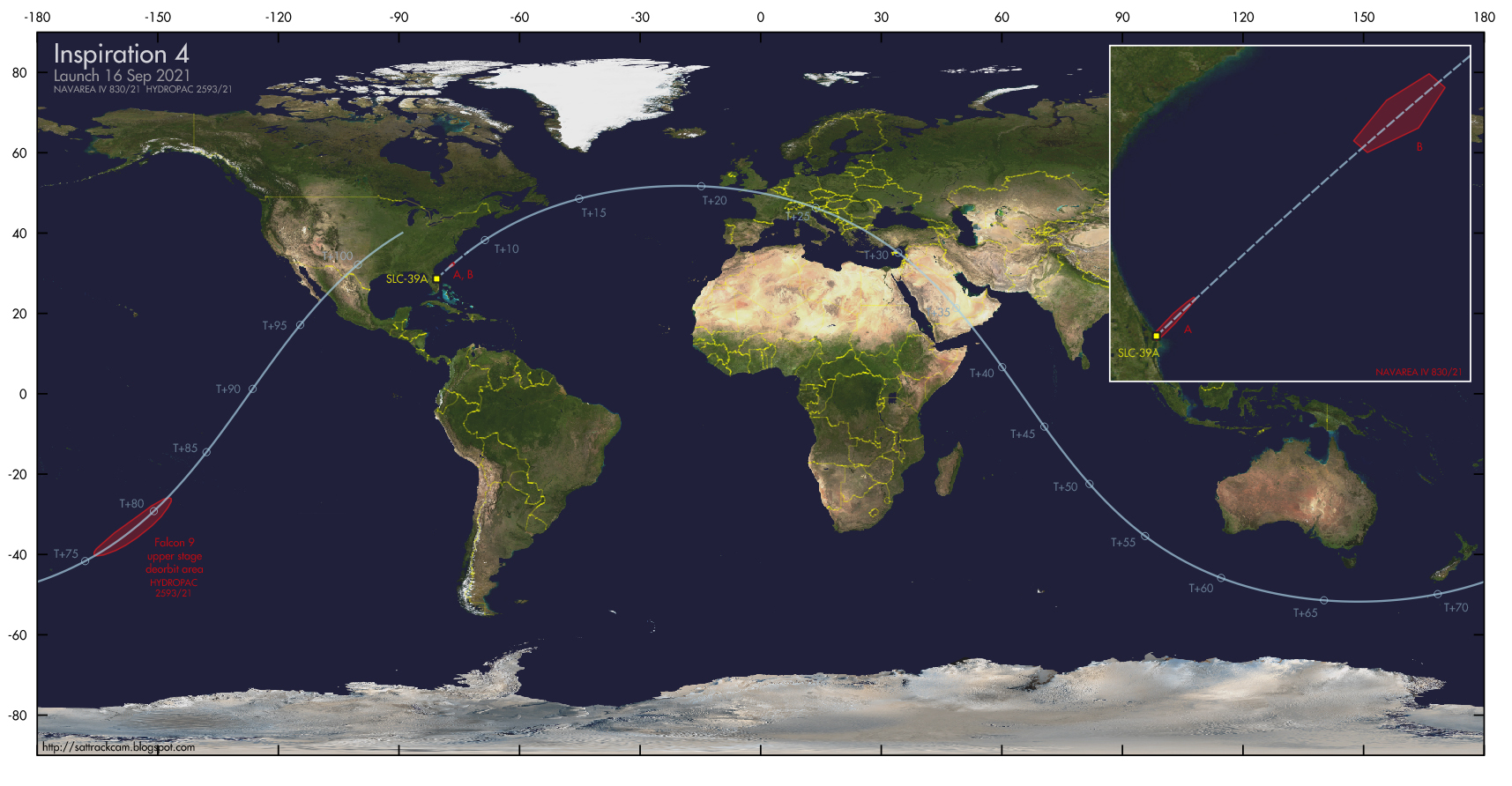 • Falcon 9, Dragon-2/Inspiration4, KSC LC-39A, 02:02 MESZ: 16. September 2021