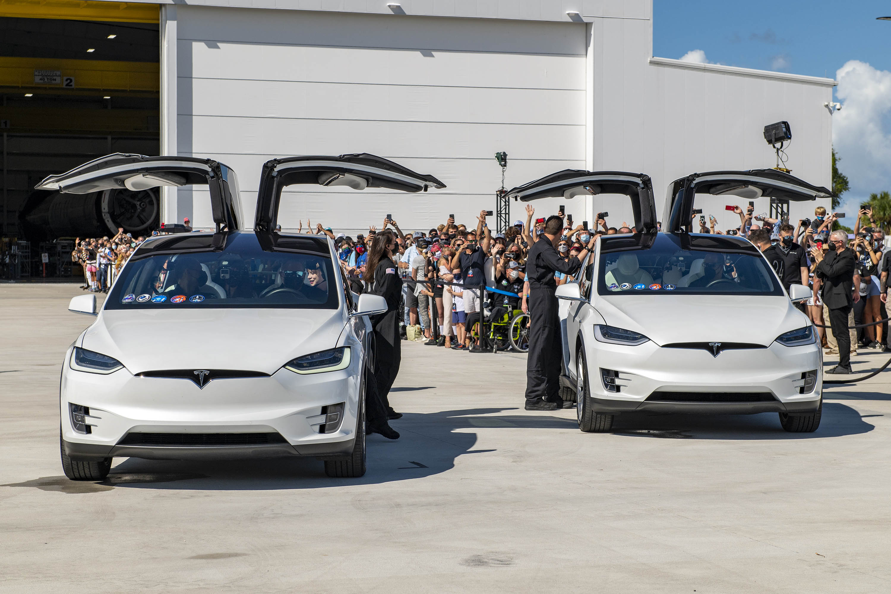 schliessen wieder geöffnet wird und Elon Musk im Raumanzug noch einsteigt