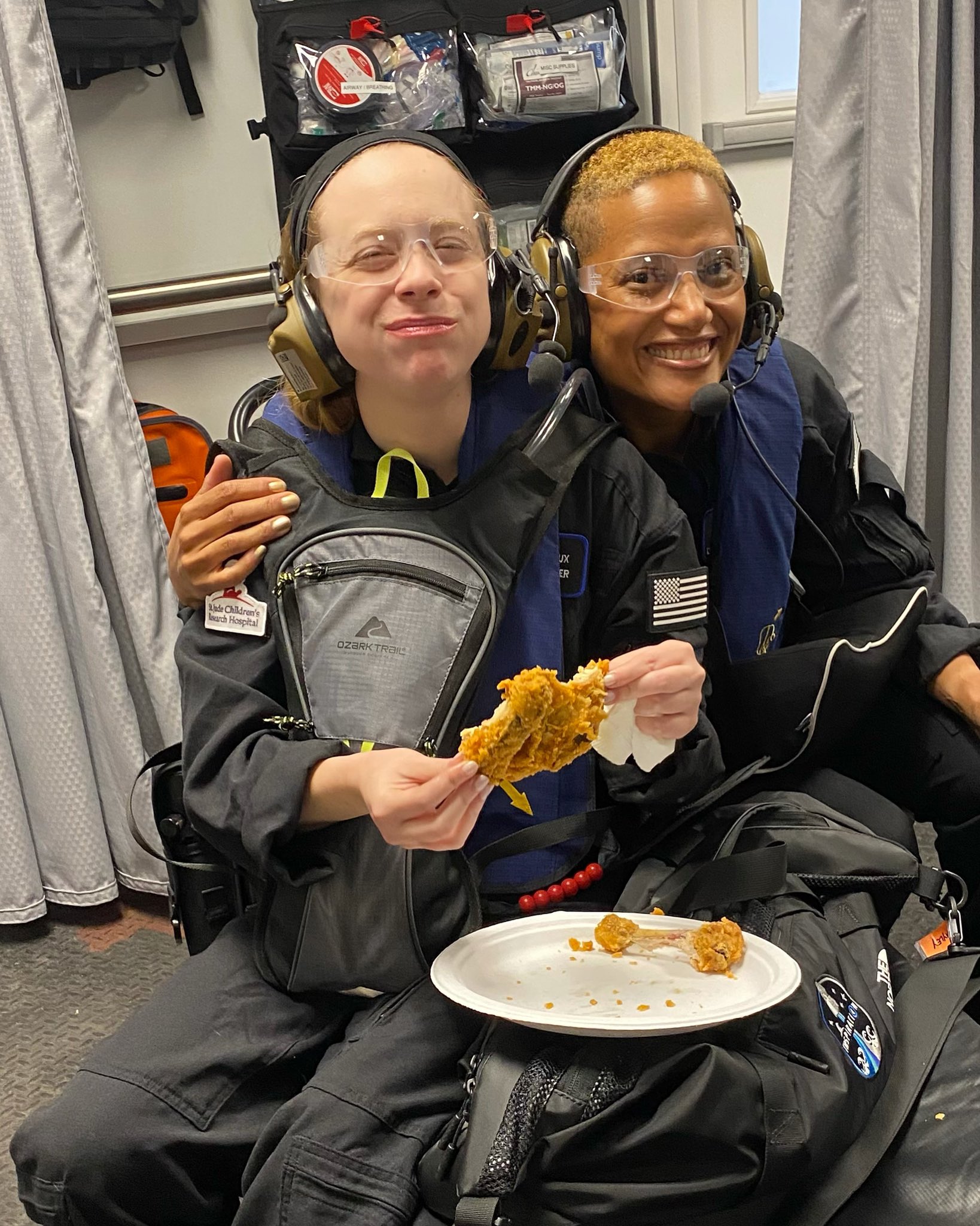 Irdische Kost ist dann doch die beste Kost.  :) Hayley Arceneaux genießt Ihr kaltes Brathähnchen. Aber warum schon wieder nur kalt ?  ;)