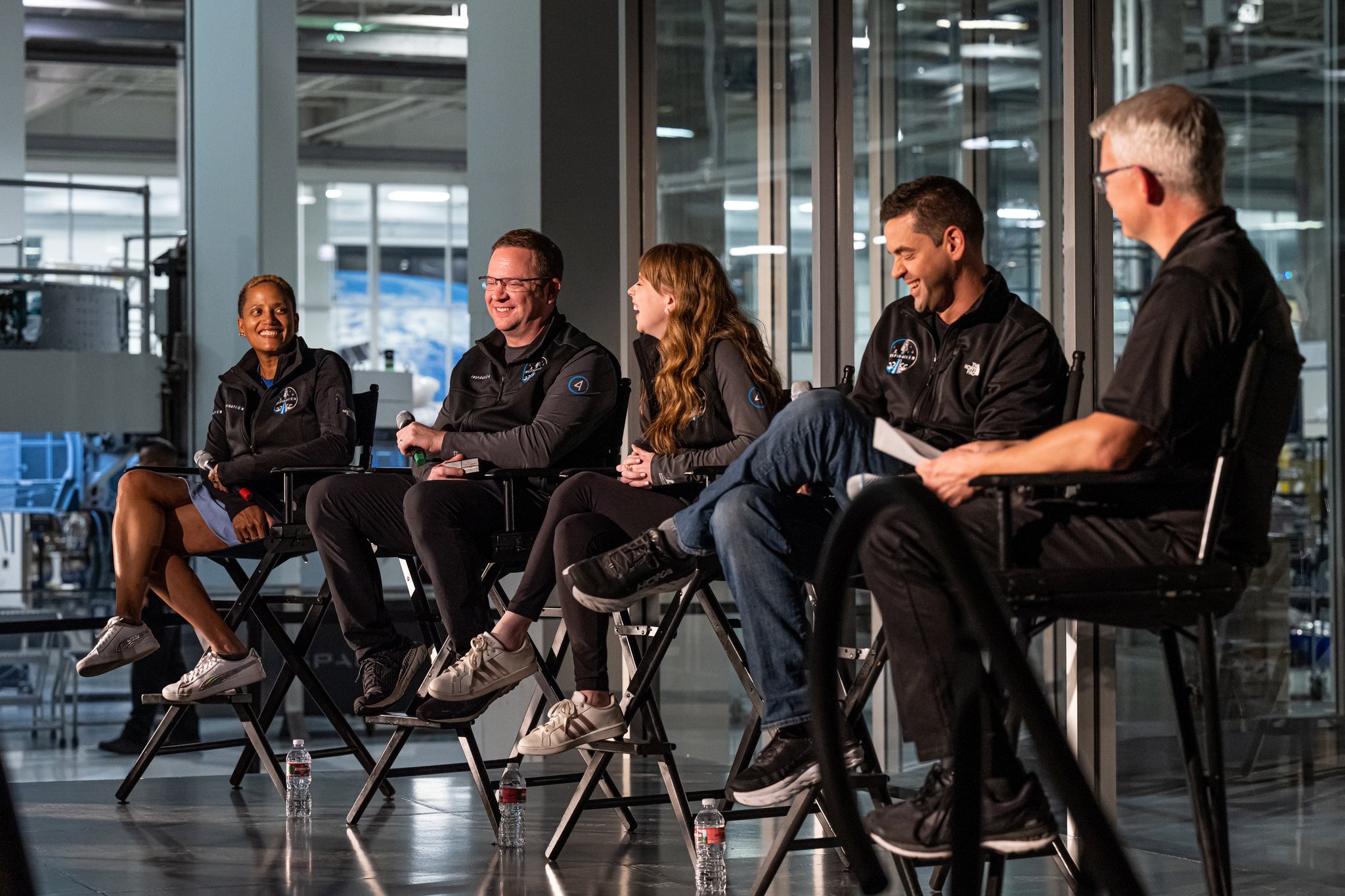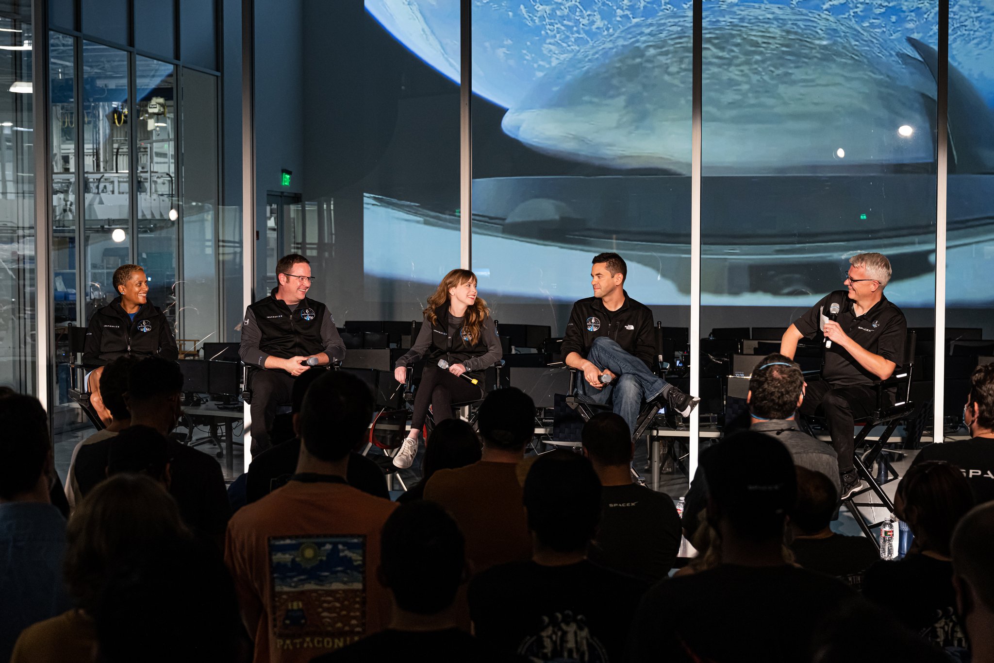 Die Besatzung war zu einer Veranstaltung zu SpaceX zurück gekehrt um sich bei allen SpaceX Mitarbeitern zu bedanken und mit Ihnen Ihre Erfahrungen an Bord der Dragon zu teilen.