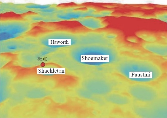 Auf diesem Bild kann  man die relative Höhe sehen. 极点 ist der Südpol, der Landeort ist der Bergkamm, der nach links unten weggeht.