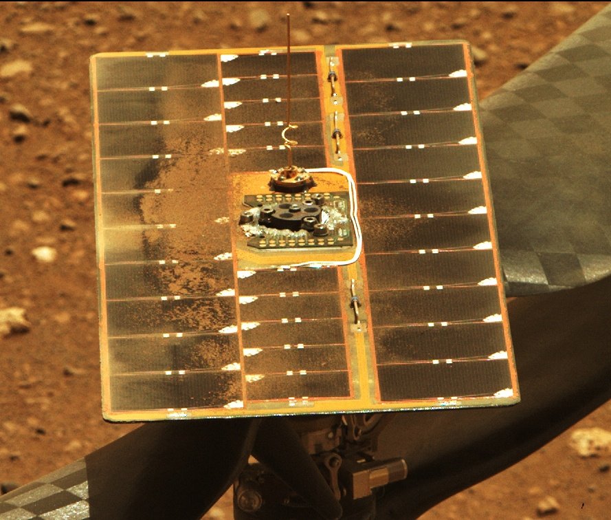 Aufgenommen am 3. April. Der Heli befindet sich da noch unter dem Rover.