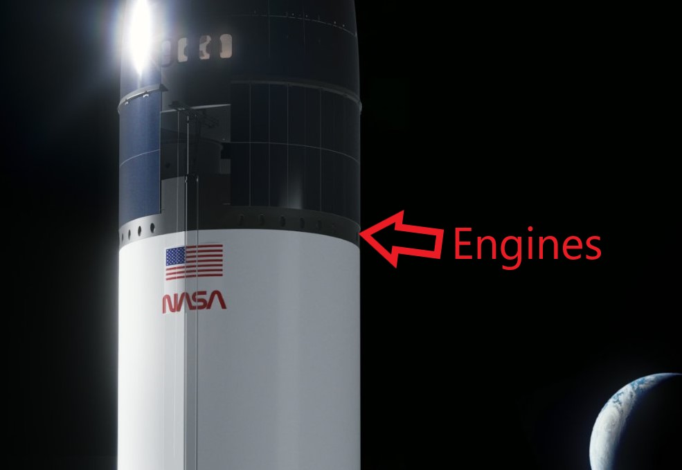 Das Lunar Starship wurde noch einmal überarbeitet. So gibt es jetzt z.b. 2 Luftschleusen und die oben liegenden Landetriebwerke wurden neu angeordnet und sind kleiner. Die Spitze des Starships ist noch mehr abgestumpft als vorher schon und dürfte einen Dockingport beinhalten. Nachdem die Beine in der letzten Version kleine, vertikal ausfahrende Stelzen waren ähneln sie jetzt wieder mehr denen eines Falcon9 Boosters.