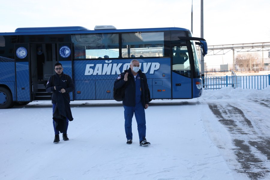 Gegen 04:00 Uhr MSK (02:00 Uhr MEZ) wurden die Besatzung und die Doubles mit den japanischen  Raumfahrtteilnehmern, nachdem sie Autogramme an den Türen des Kosmonautenhotels der Stadt Baikonur hinterlassen hatten, für die Fahrt mit den speziell ausgestatteten Bussen zum Pl. 254 des Kosmodroms aus "der Stadt verabschiedet".
