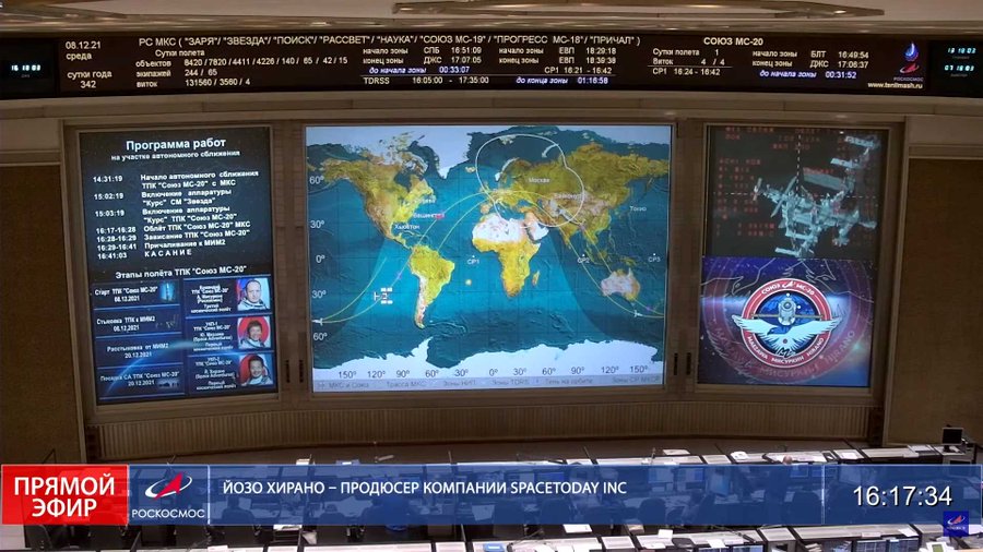 Nun sind auch die anderen Raumfahrer mit herzu gekommen, und, über einen Monitor auch die Besucher , die im ZUP/MCC Koroljow vor dem Bildschirm saßen und das Geschehen an Bord verfolgten.