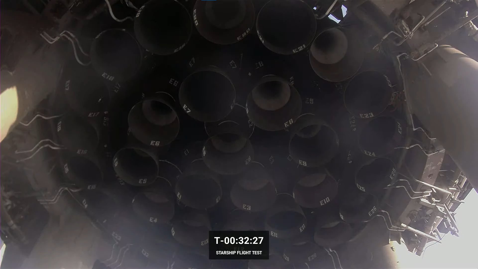 • Starship (B7/SN24), Testflug, Starbase, 15:28 MESZ: 20. April 2023