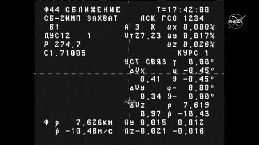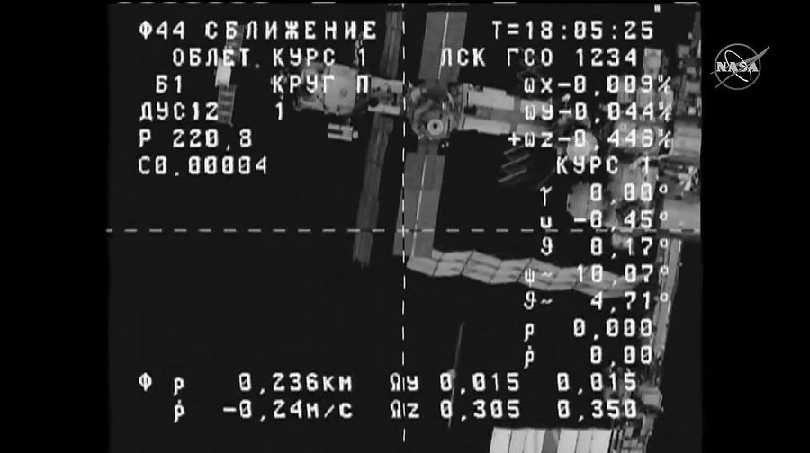 Bei Roskosmos habe ich jetzt auch ein Bild mit dem oben beschriebenen Test der Kamera und dem Kurs-Test gefunden: