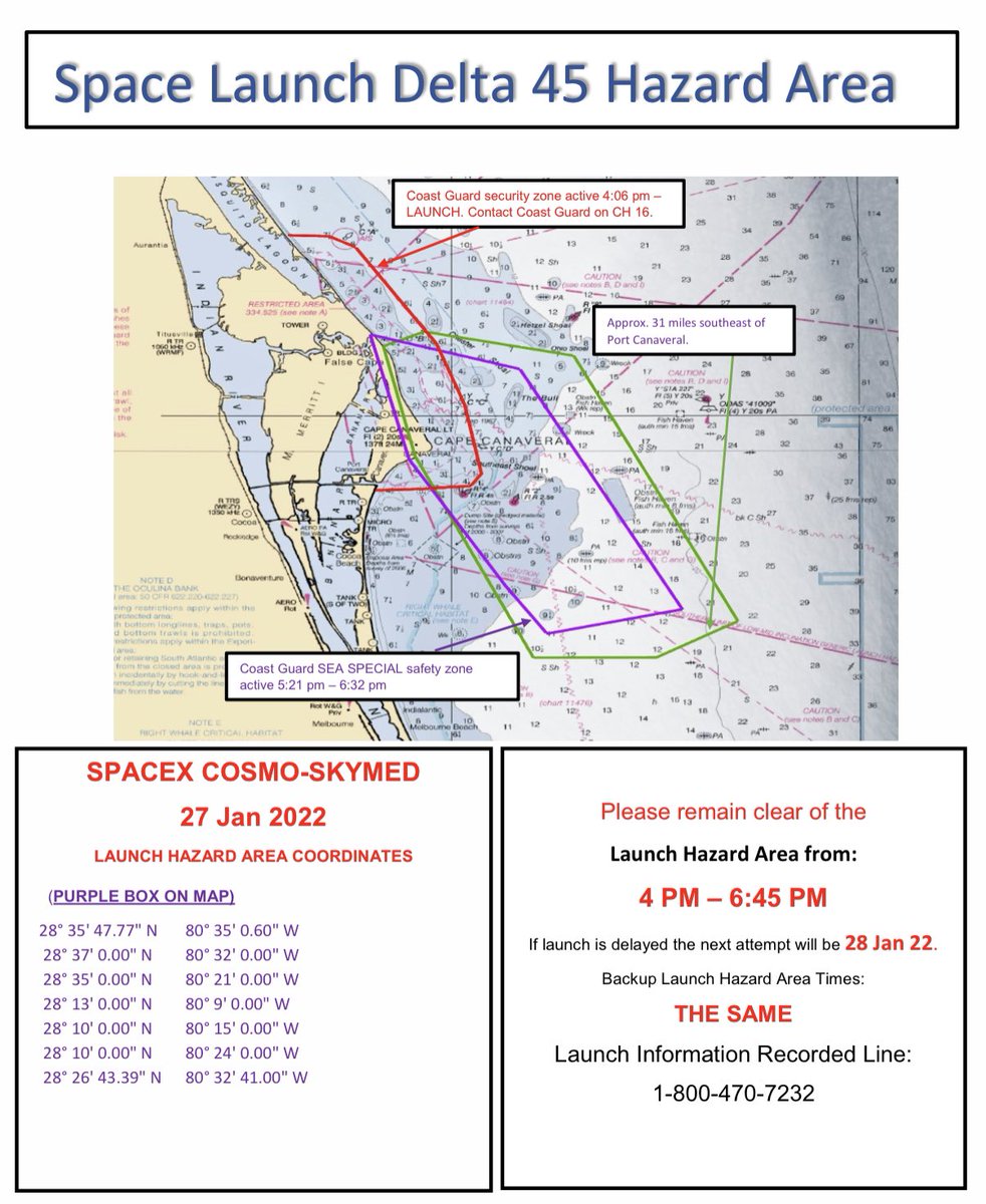 Veröffentliche Gefahrenbereiche für den Start von SpaceX / CSG-2