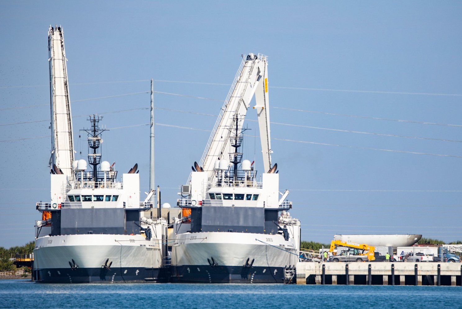 Das SpaceX Mehrzweckschiff Doug ist wieder im Hafen eingelaufen. Und wie eigentlich immer in der letzten Zeit mit zwei völlig intakten Verkleidungshälften des Starlink Fluges. Beide hälften hatten bei dieser Mission Flug 4 bzw. Flug 5 unternommen.