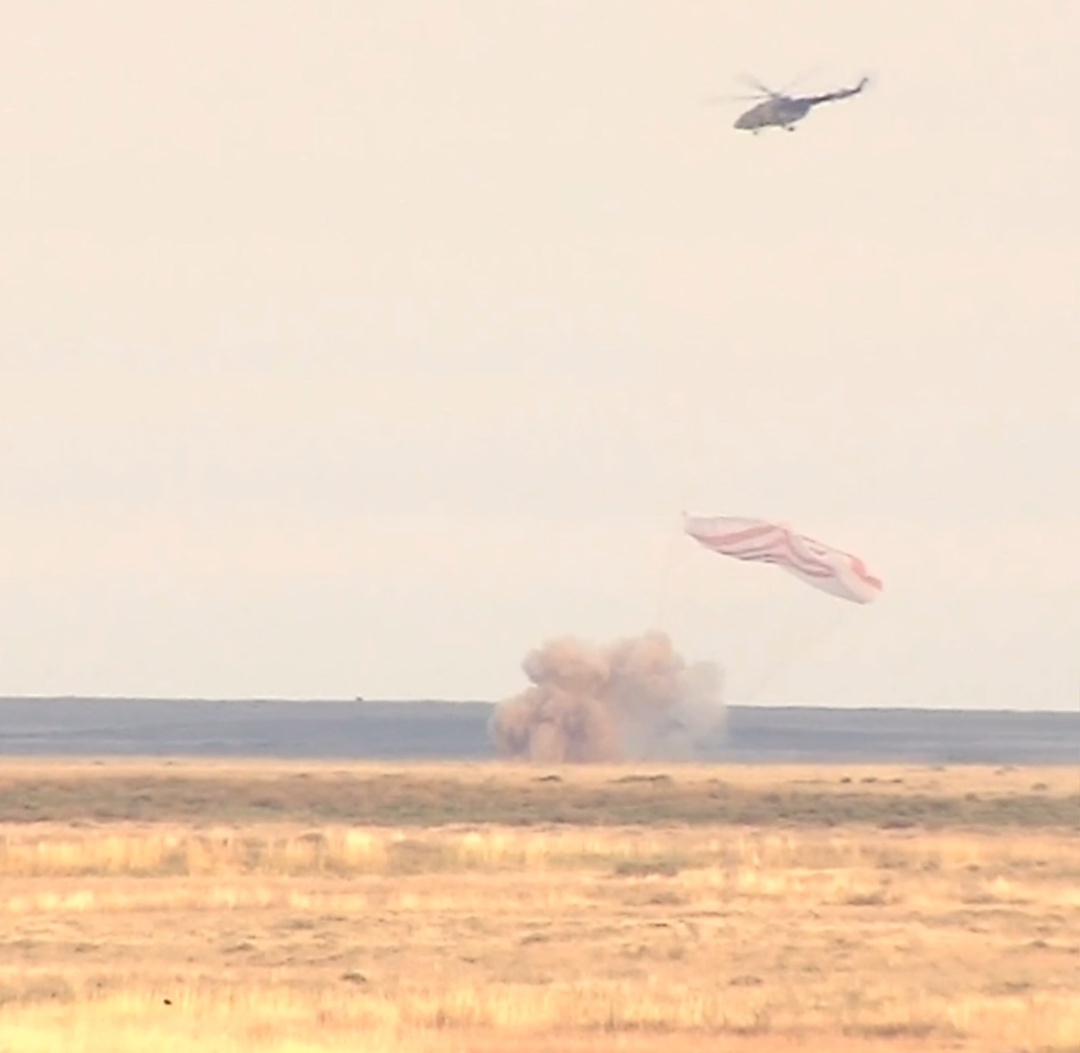 Landung in der Steppe von Kasachstan am Sonntag, 20. April 2025 um 03:17 Uhr MESZ.