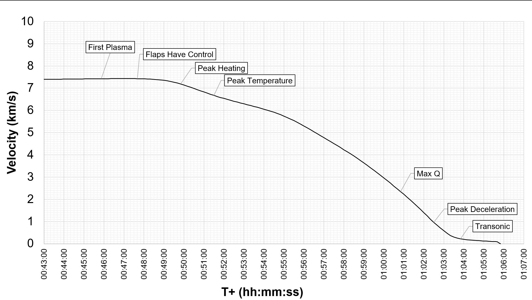 • T:00:49:05 - Ein hell leuchtender Punkt Plasma am Flügel erscheint. Vermutung: Fehlt hier eine Hitzeschutzkachel?