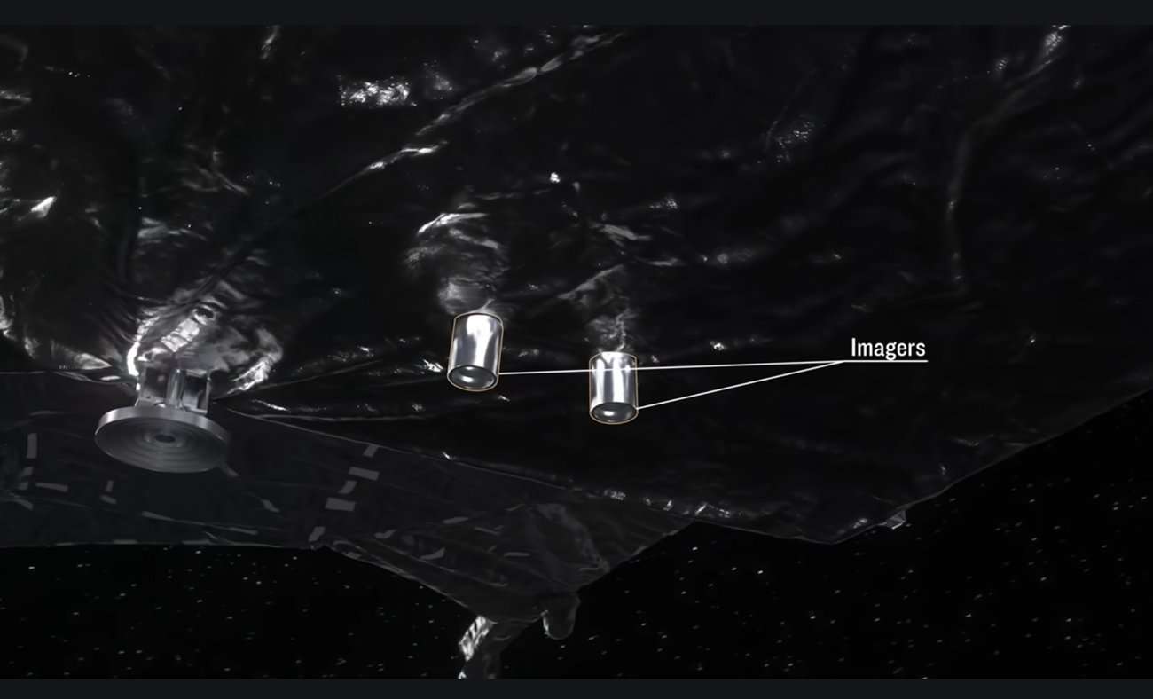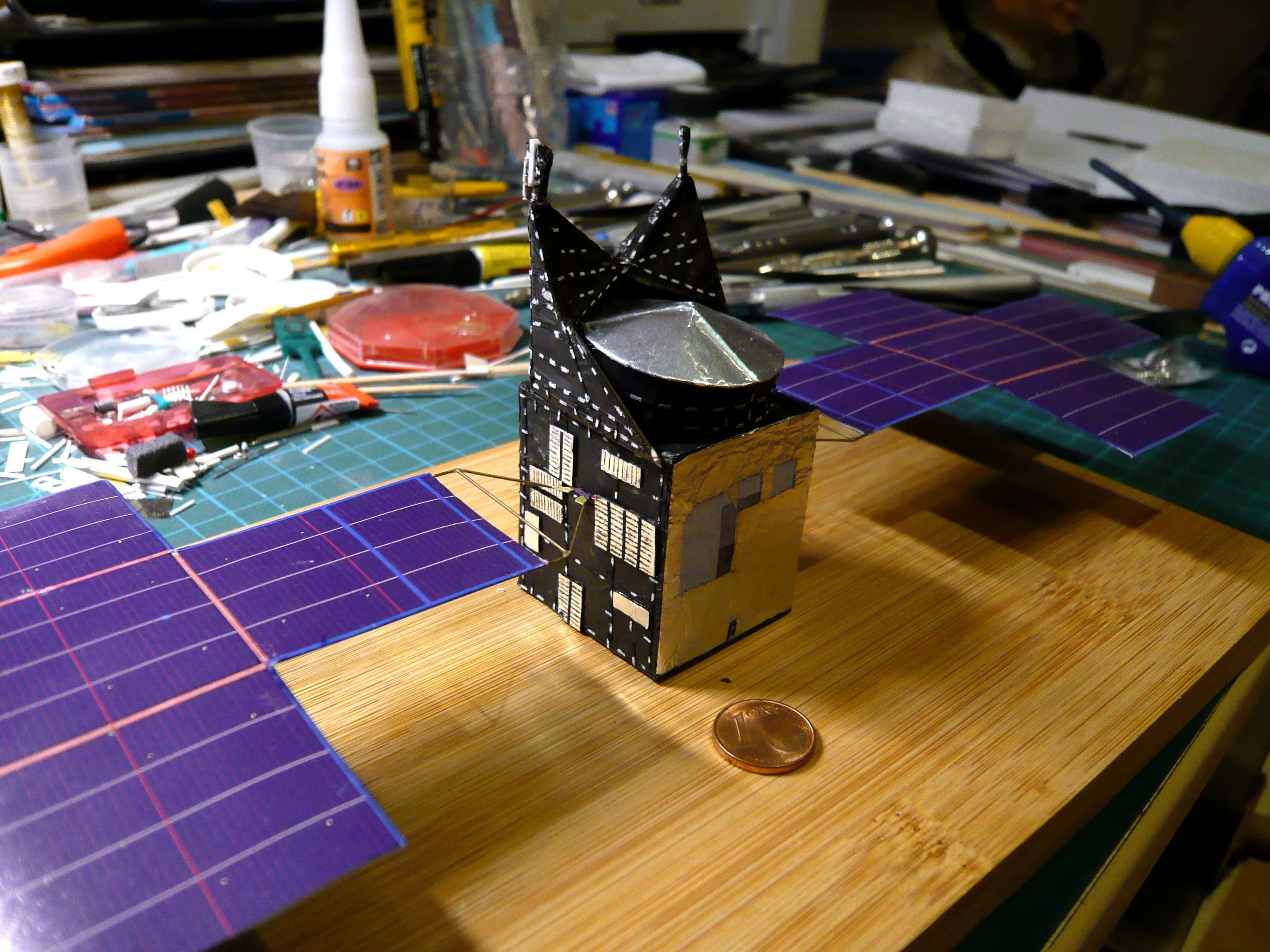 X-Band High Gain Antenna dazu gestellt, die gerade noch so dazwischen passt.