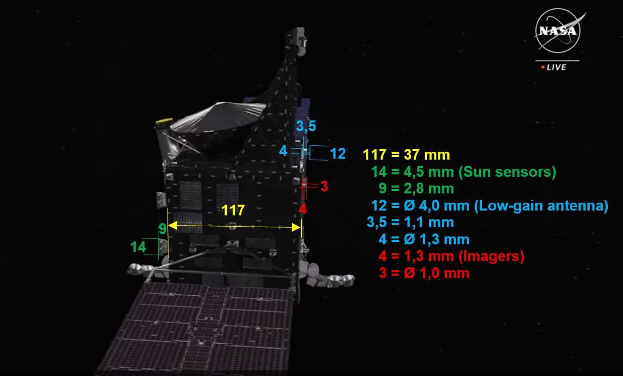X-Band High Gain Antenna dazu gestellt, die gerade noch so dazwischen passt.