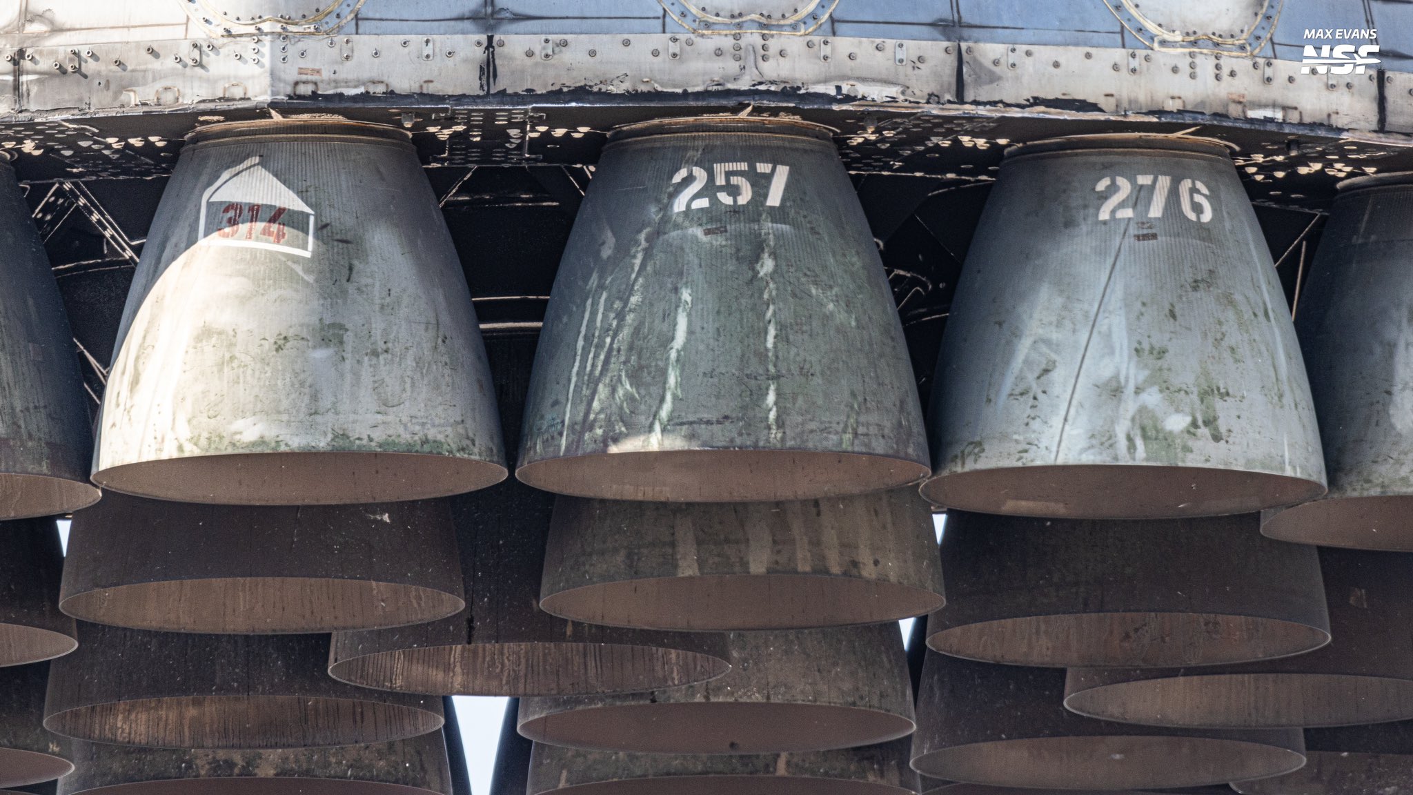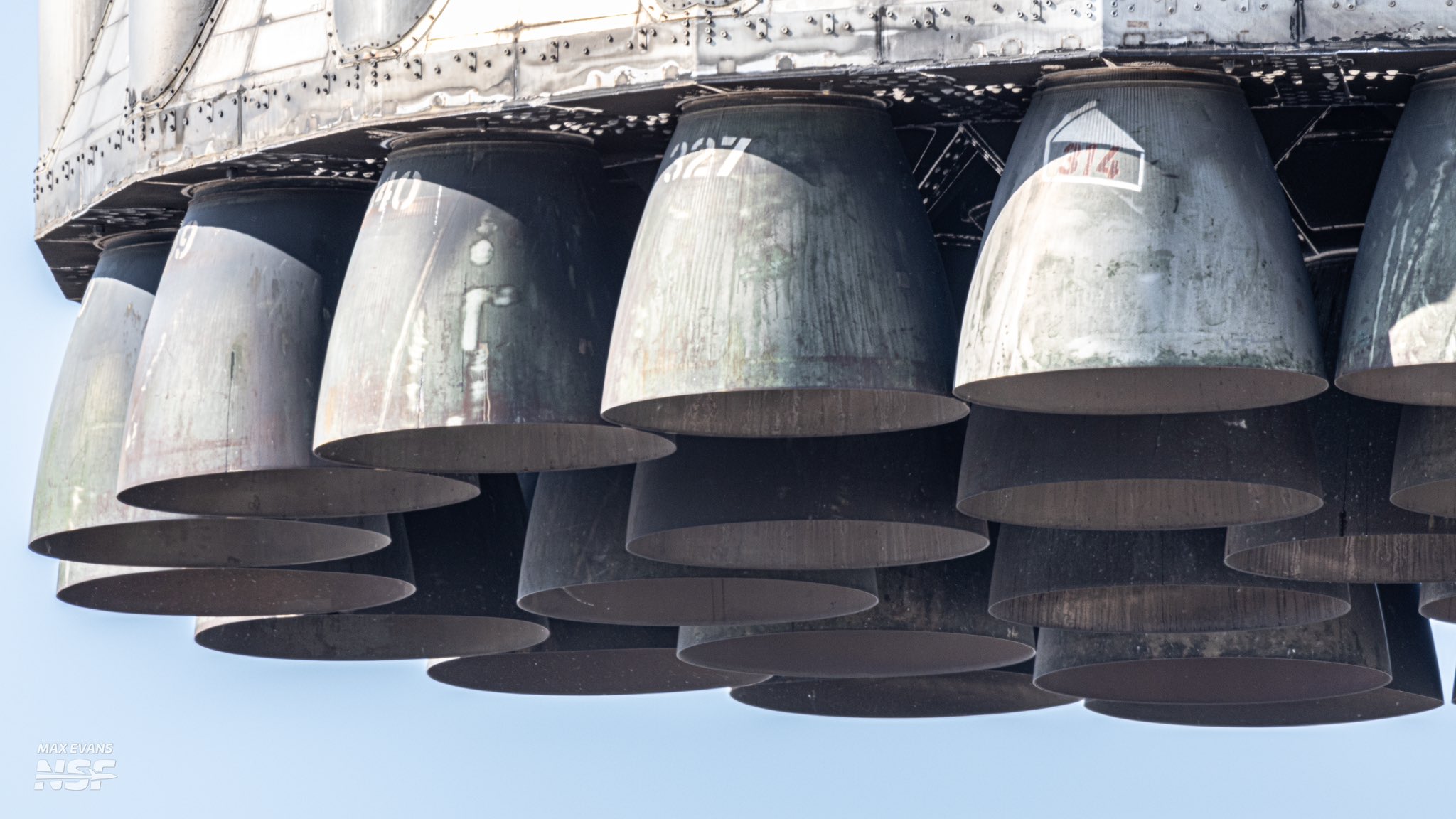 Hier kann man dank des Supertele ab etwa 06:40 sehr gut das Abtrennen und den Flug des Hot Staging Rings verfolgen und da sieht es tatsächlich so aus, als könnte er mit dem Booster kollidiert sein und daran den oben diskutierten Schaden verursacht haben!
