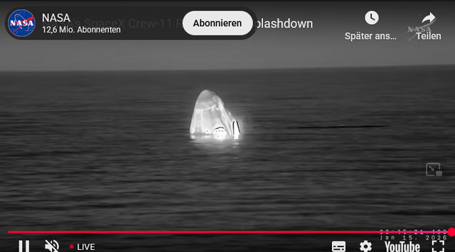 Die Dragon mit Crew-11 an Bord hat planmäßig abgelegt und befindet sich jetzt auf dem Rückweg zur Erde. Fortsetzung der Rückkehr im 2.Livestream (aber erst in einigen Stunden).