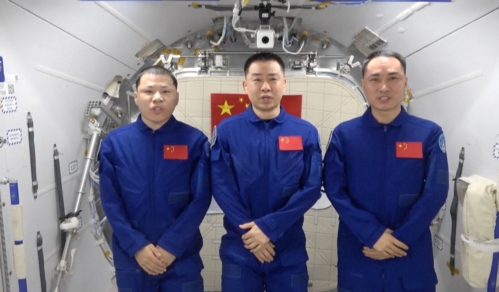 Die drei Taikonauten an Bord der chinesischen Raumstation Tiangong schickten aus 400 km