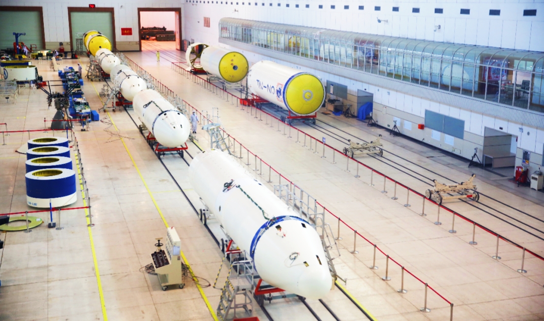 Das Foto zeigt die Montagestätte der Trägerrakete Langer Marsch 2F Y22               (Foto: Qu Tianqi/CASC)