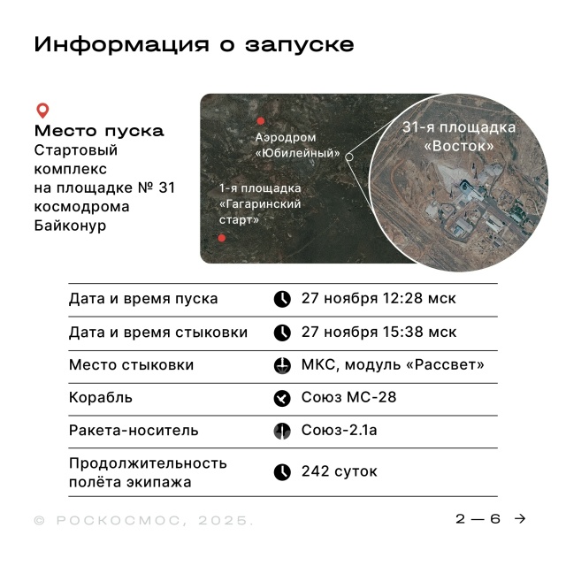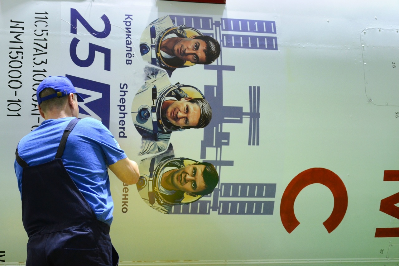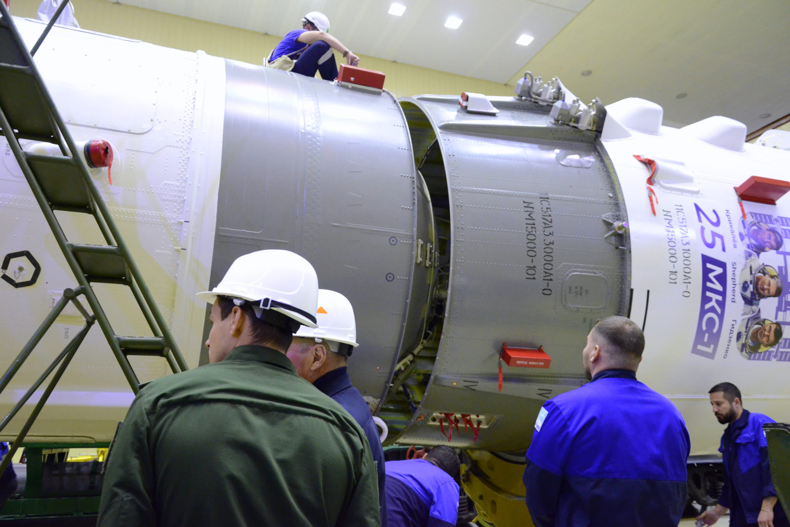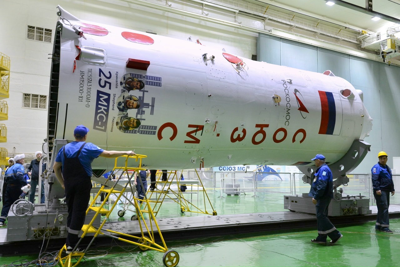 Fairing - 25 J ISS PatchHeute, am 19.11.2025, führten Fachleute der einen Fachgebiete die Abnahme von Sojus MS-28 technische Inspektion des Raumschiffs durch, bereiteten die mechanischen Schutzeinrichtung des SAS vor, dass die Nutzlastverkleidung aufgebracht werden konnteen für die Startbereitschaftsprüfung.