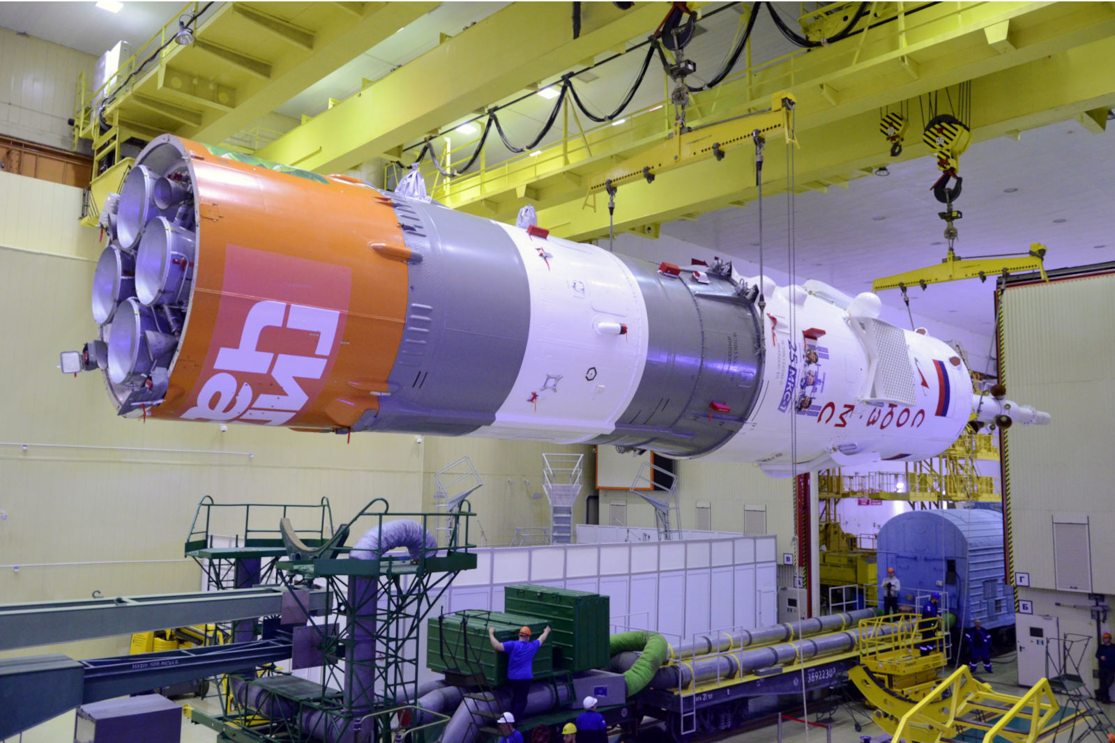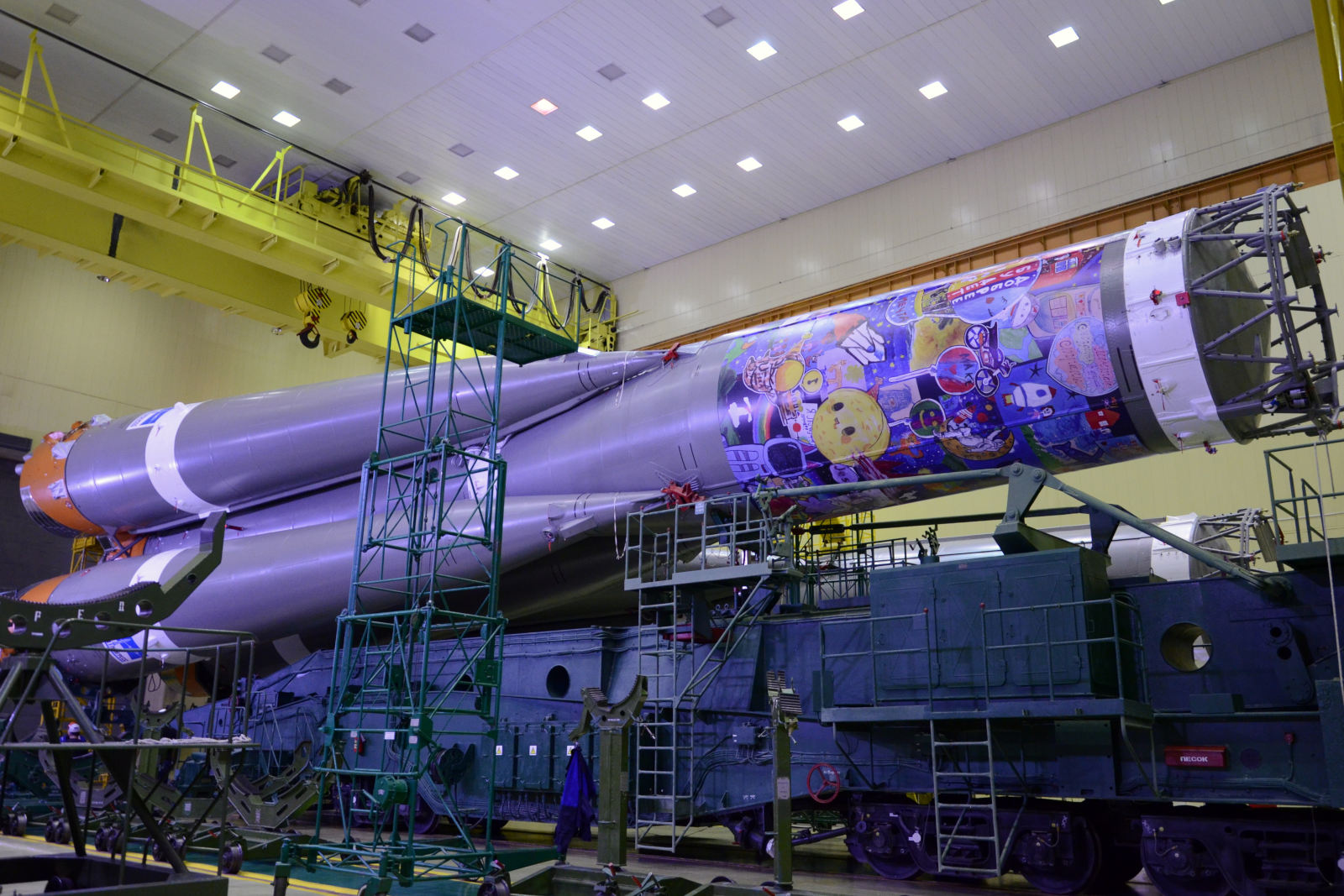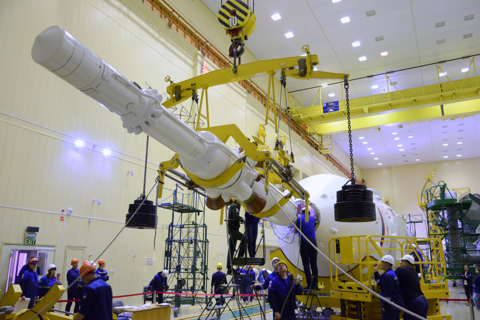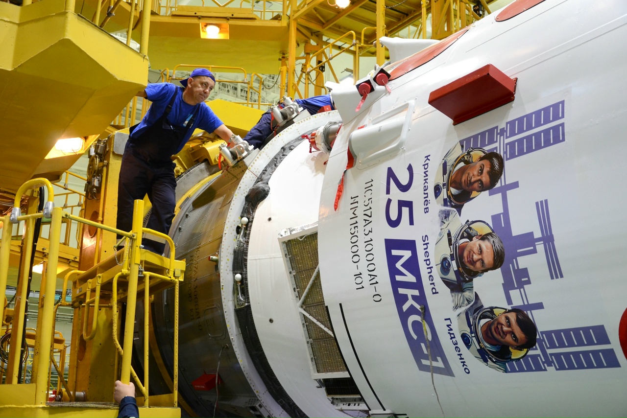 Fairing - 25 J ISS PatchHeute, am 19.11.2025, führten Fachleute der einen Fachgebiete die Abnahme von Sojus MS-28 technische Inspektion des Raumschiffs durch, bereiteten die mechanischen Schutzeinrichtung des SAS vor, dass die Nutzlastverkleidung aufgebracht werden konnteen für die Startbereitschaftsprüfung.