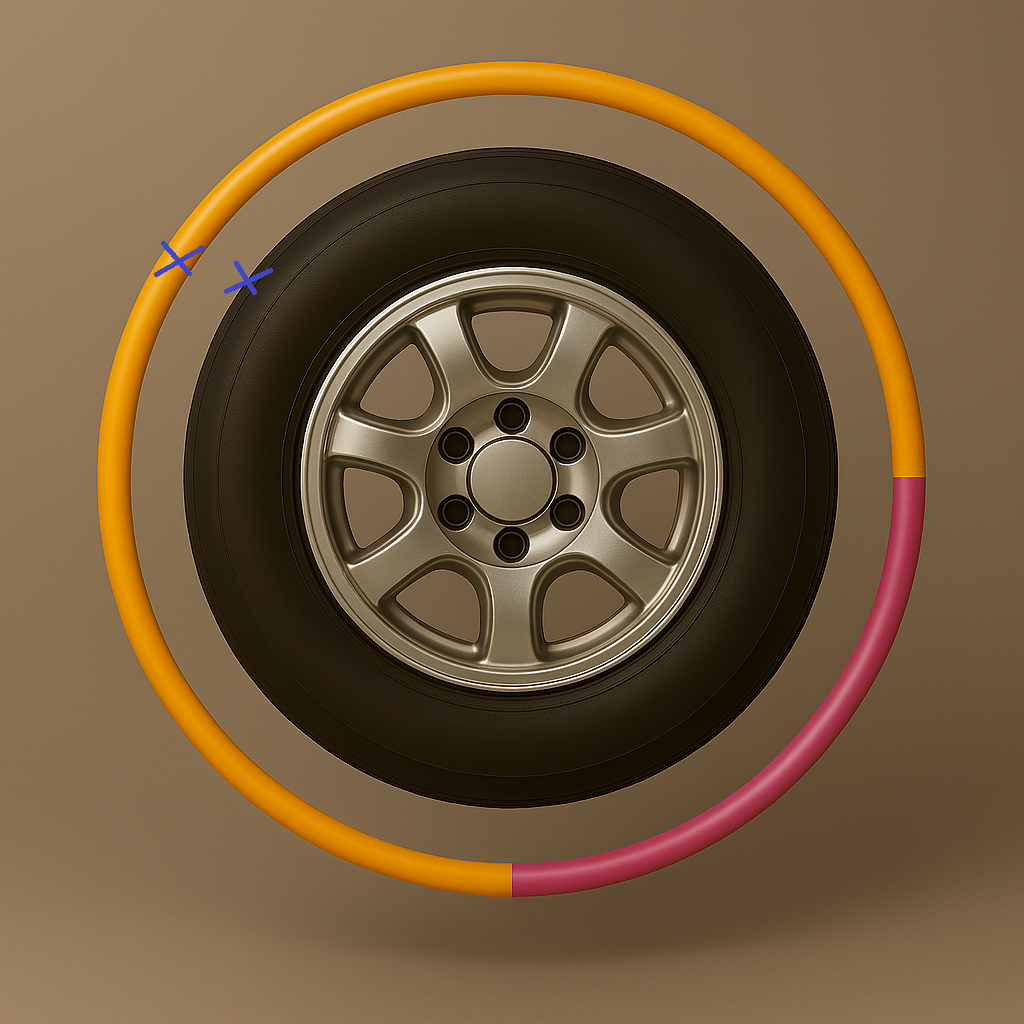 Noch deutlicher wird, es, wenn die Erde, bzw. der Autoreifen, sich um 90° gedreht hat: