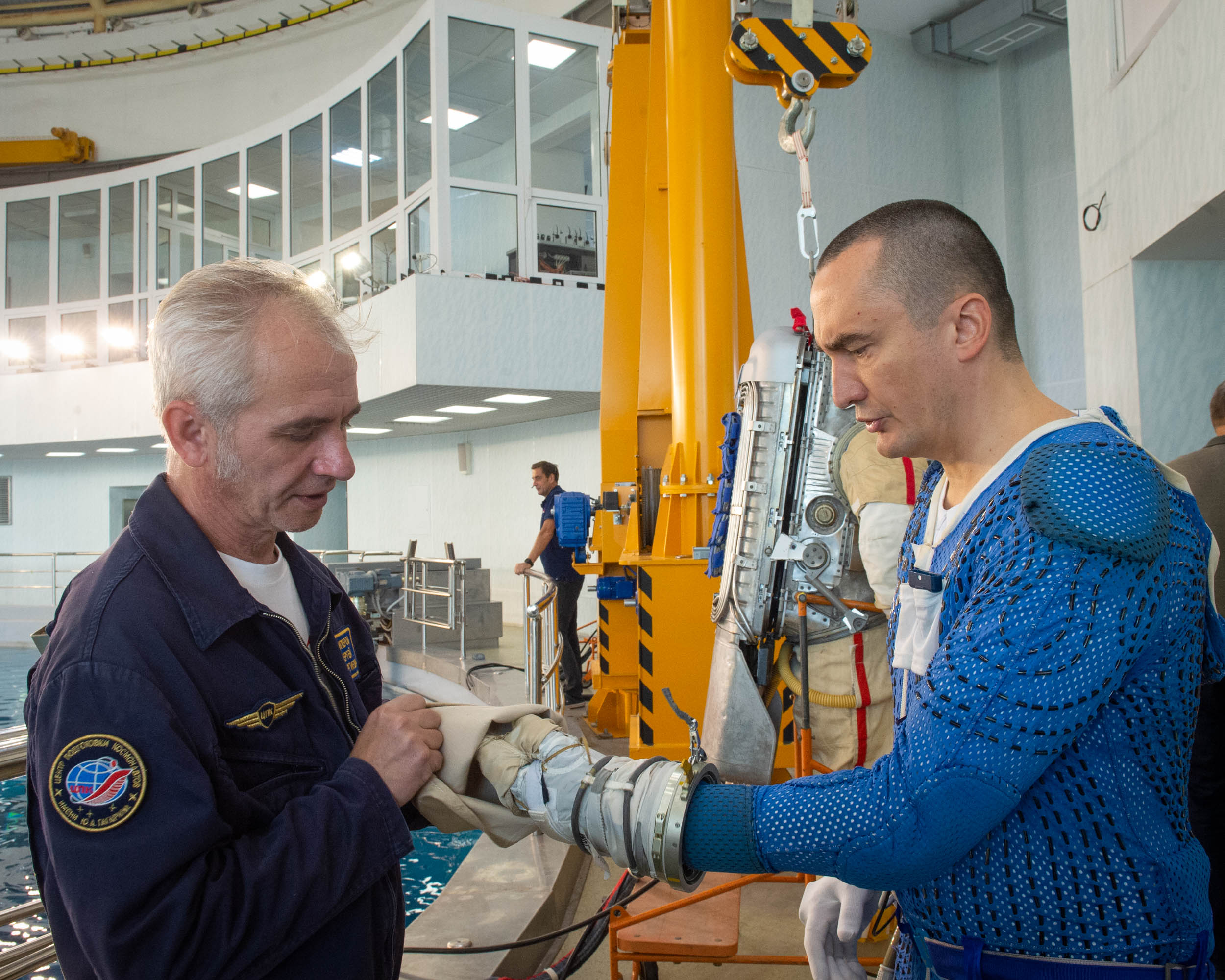 Gestern, am 09.09.2025, fand im Hydrolaboratorium des ZPK "J. Gagarin" ein Training für die geplanten Aussenaktivitäten "WKD 66" und "WKD 67" für Pjotr Dubrow und Anna Kikina statt.