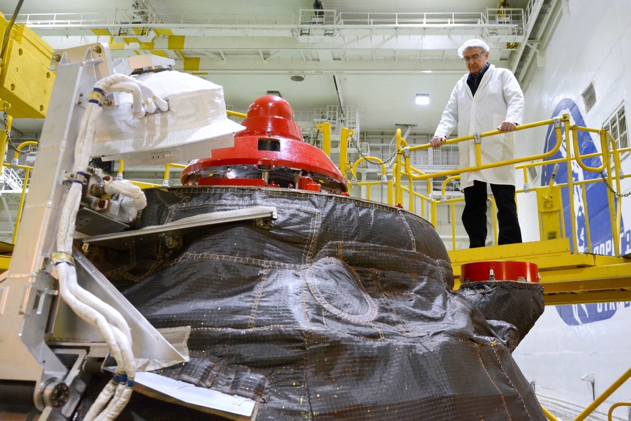 auf dem Kosmodrom Baikonur in Empfang genommen.