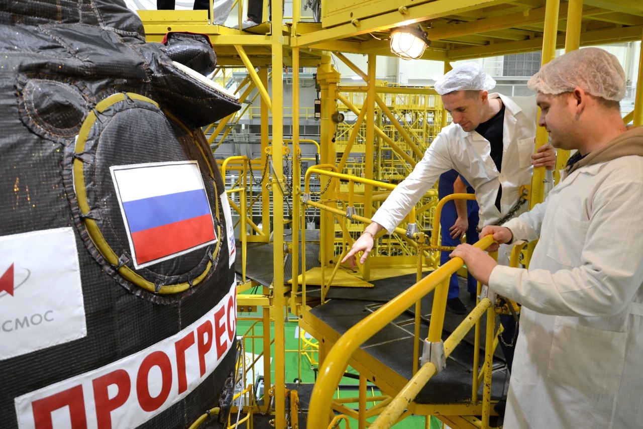 Die Kollegen der Filiale Energia/Baikonur inspizierten Progress MS-33 und stellten