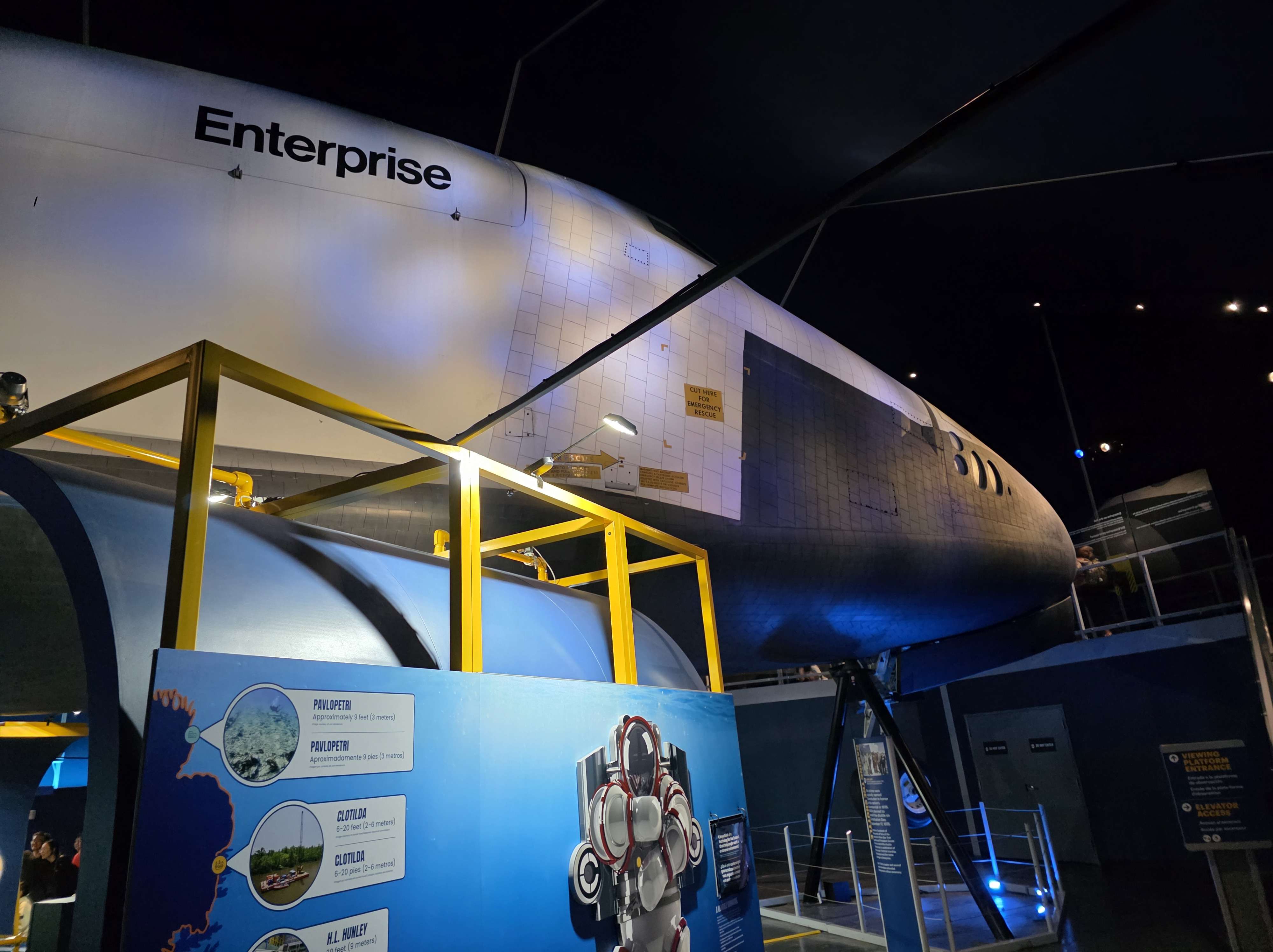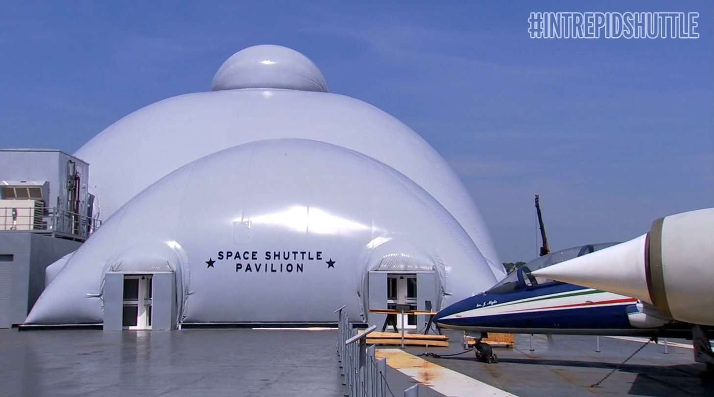 Seither steht die Enterprise in der neu errichteten und stärker armierten Ausstellungshalle, dem Space Shuttle Pavilion, direkt hinter dem Aircraft Restoration Hangar am Heck der Intrepid, in dem man sie nunmehr besichtigen kann,