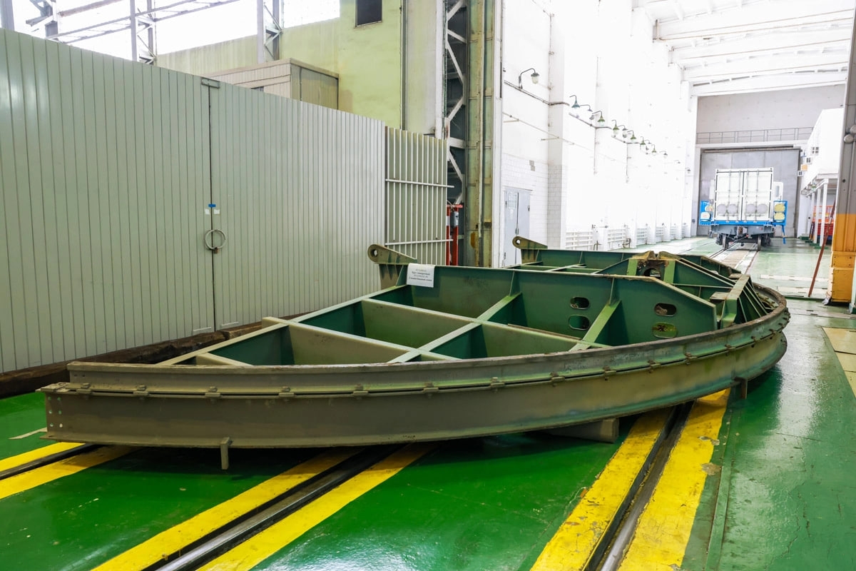 🔵 Die Kabinenteile sind in einer rd. 13.000 m³ großen Halle untergebracht.