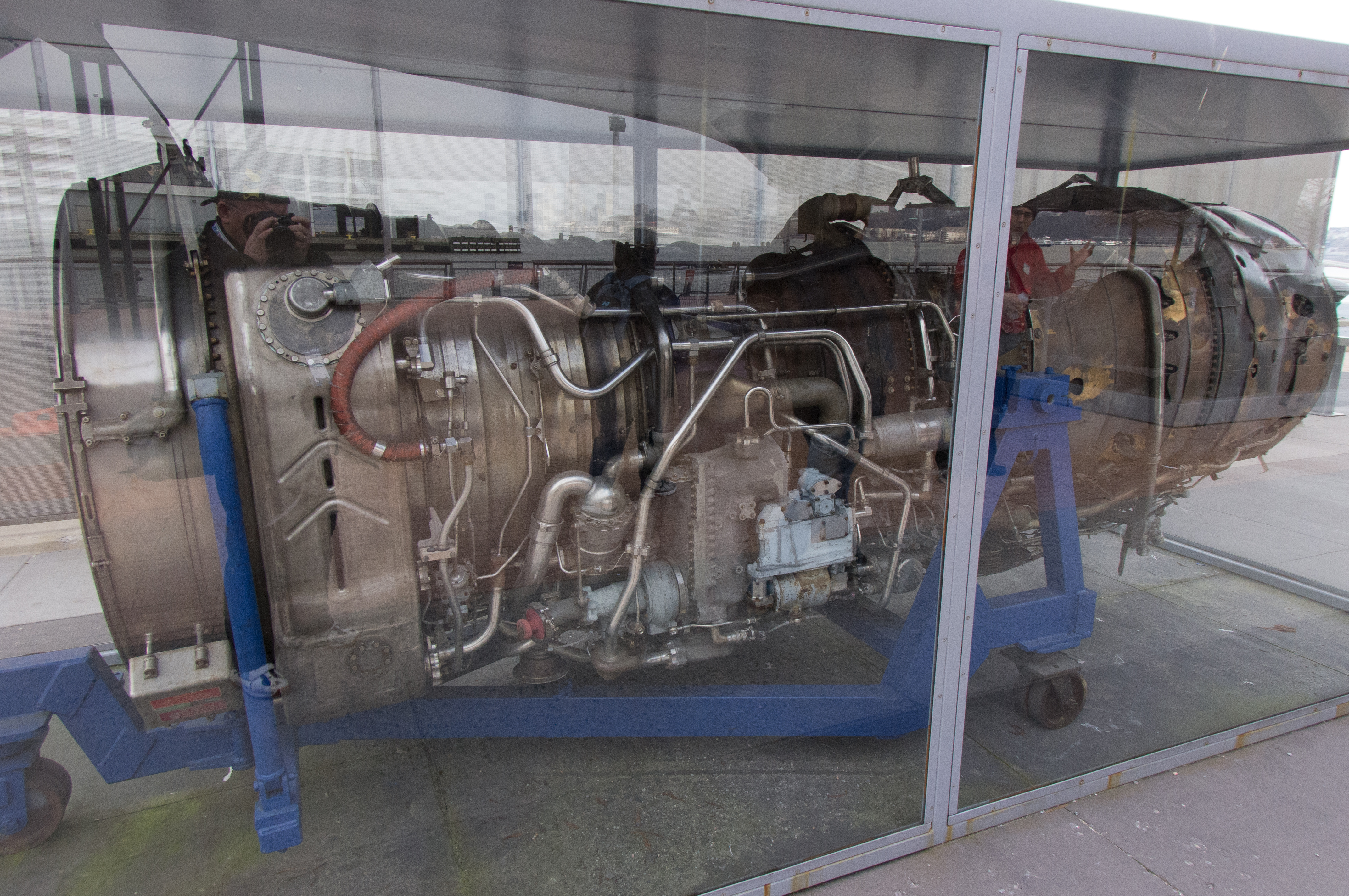 Unter der Concorde ist ein Rolls-Royce Olympus 593 Mk.610 Turbojet Triebwerk ausgestellt. Vier dieser Triebwerke haben die Concorde angetrieben.