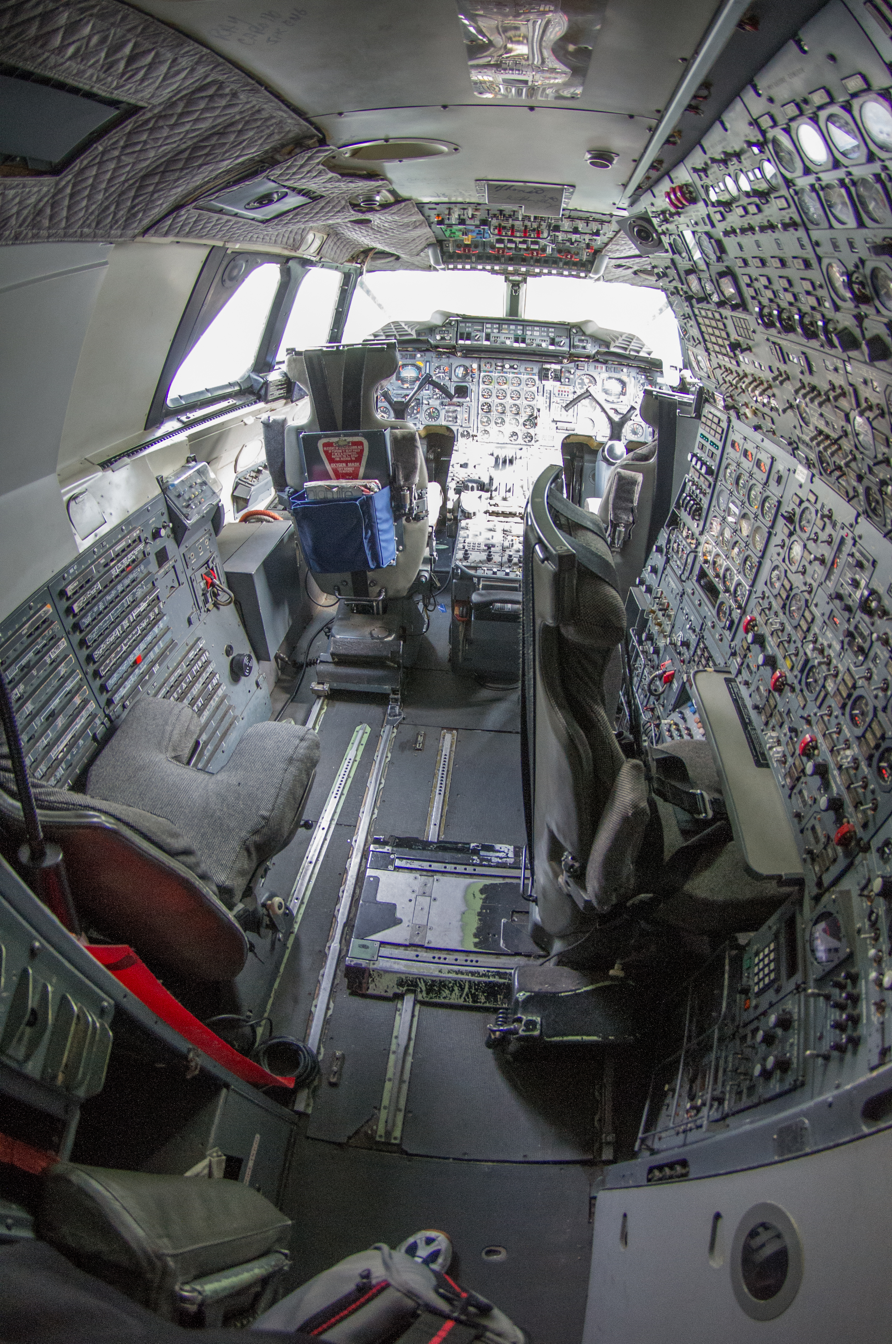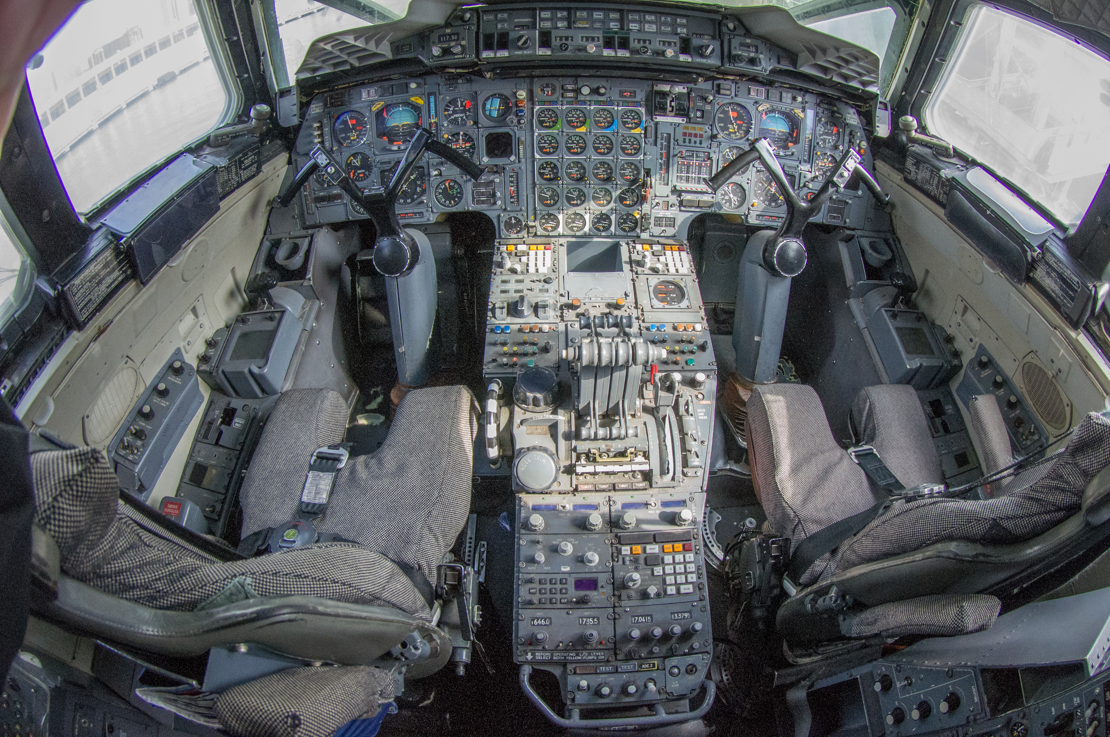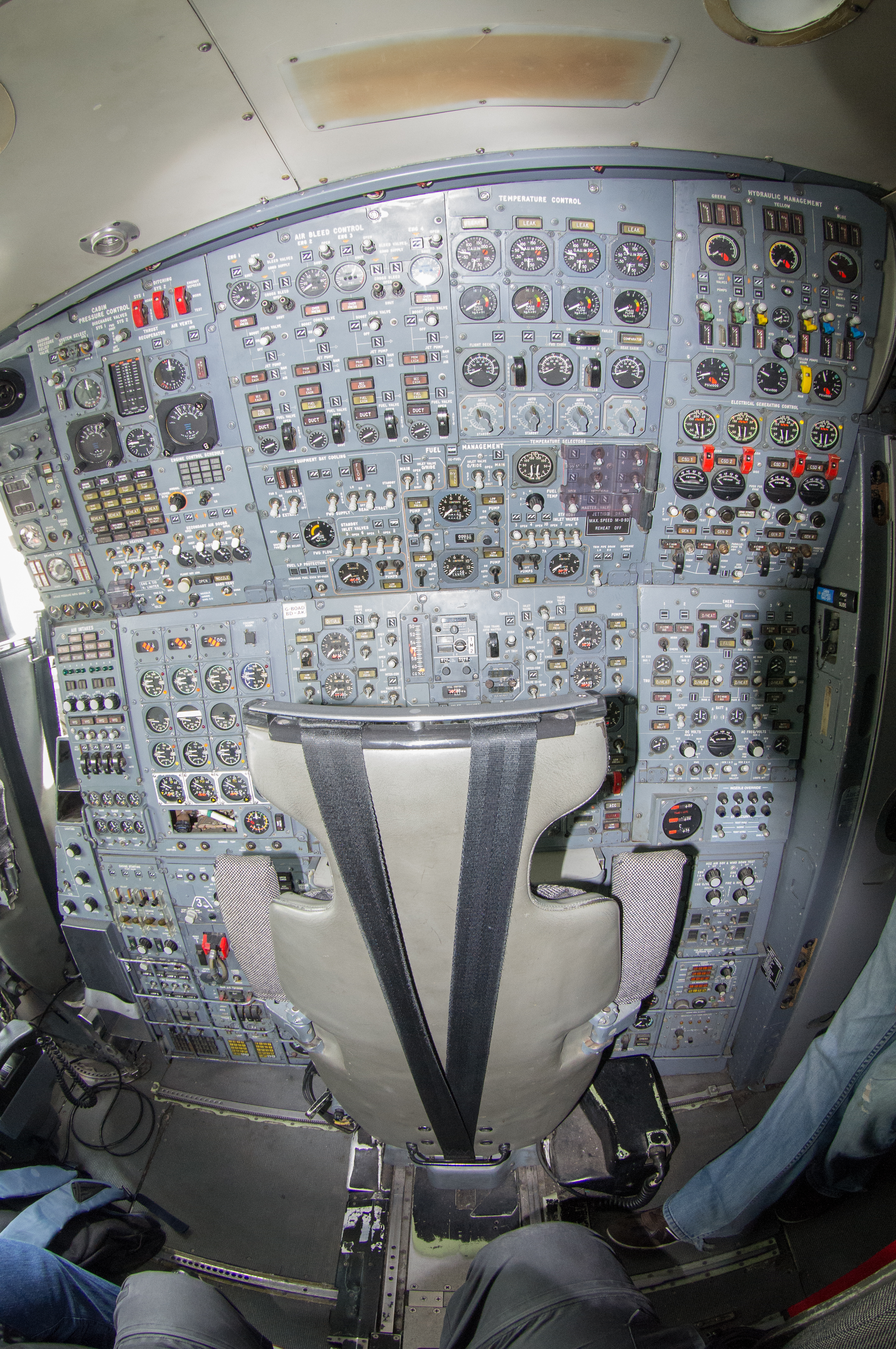 Der Arbeitsplatz der Bordingenieurs. Rechts am Bildrand der ominöse Spalt in welchem der Bordingenieur seine Mütze klemmte. Möglich war das weil die Concorde durch die Luftreibung bei Überschall sich um bis zu 25 cm dehnte. Wurde uns vom Guide erzählt ...  ;P