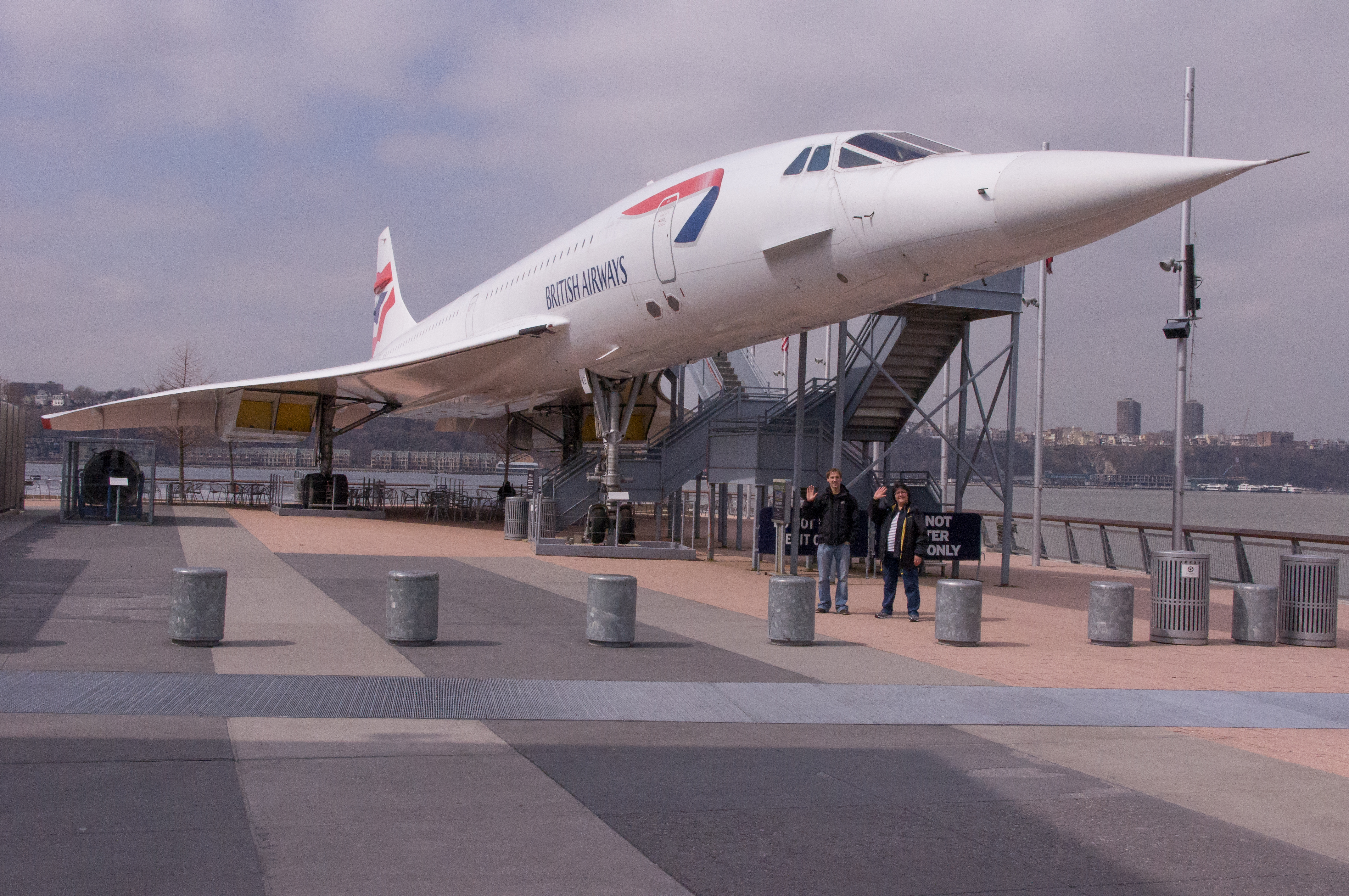 Da ist die Concorde Seriennummer Alpha Delta G-BOAD von British Airways, winkend davor meine Frau und einer meiner Söhne: