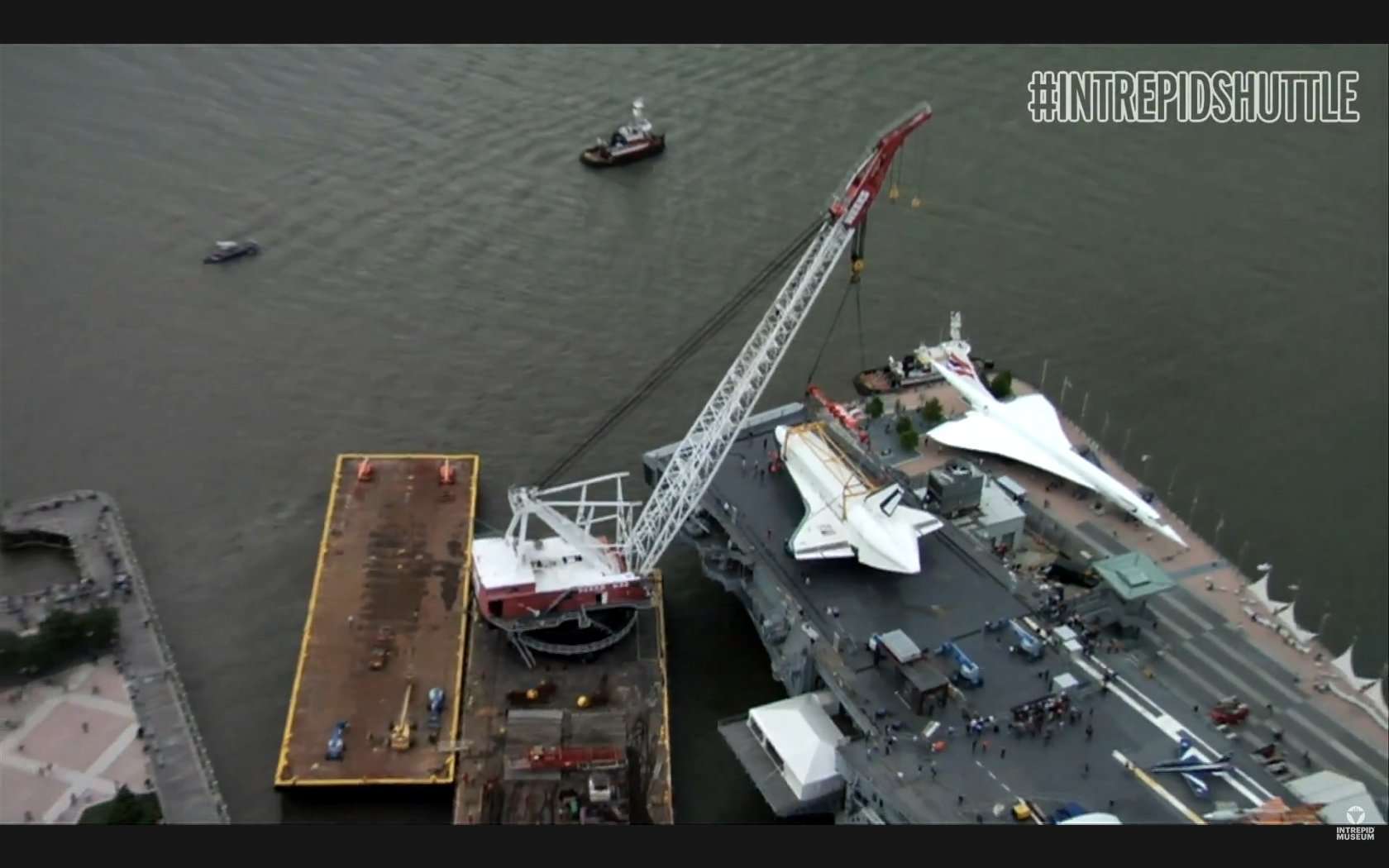 Die Enterprise wurde anschließend am 6. Juni 2012 auf einem Lastkahn den Hudson River hinauf zur Intrepid transportiert,