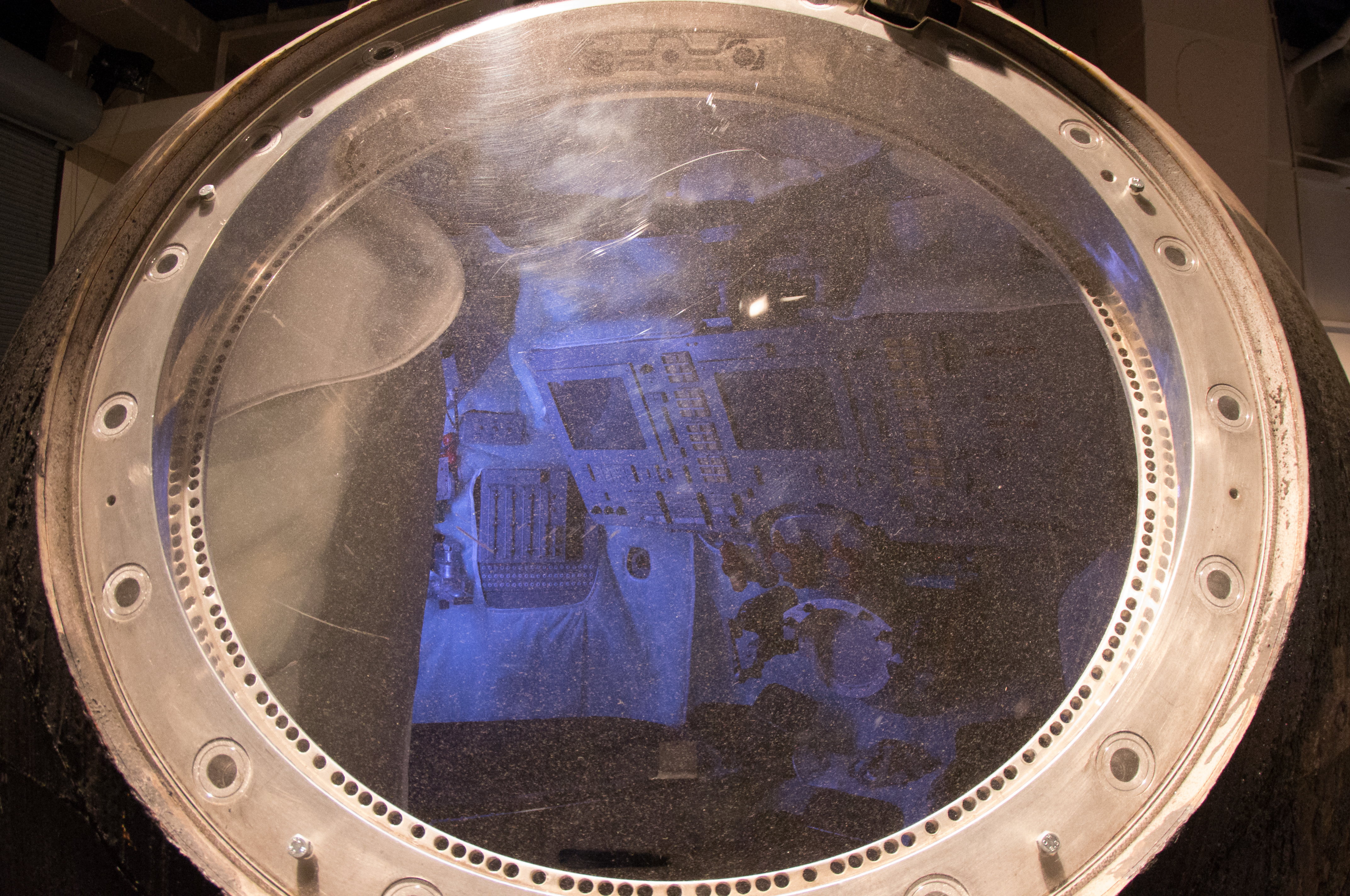 Ich habe durch die Plexiglasscheibe versucht ein Foto vom Innenraum zu machen, leider war die Scheibe sehr verstaubt, man kann aber ein bischen was erkennen