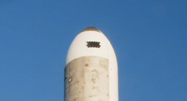 Auf der Nutzlastverkleidung waren im Livevideo schwarze Sechsecke zu sehen.