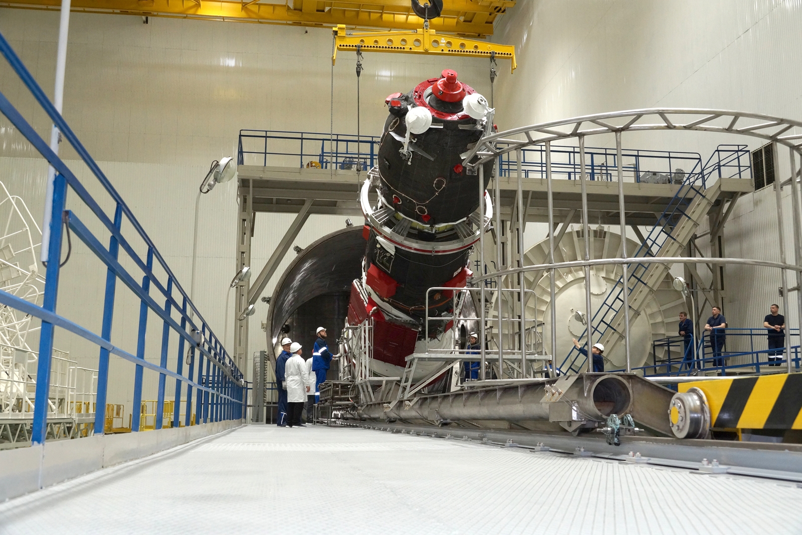 Progress MS-34 wird auf dem EMP-Prüfplatz gesetzt