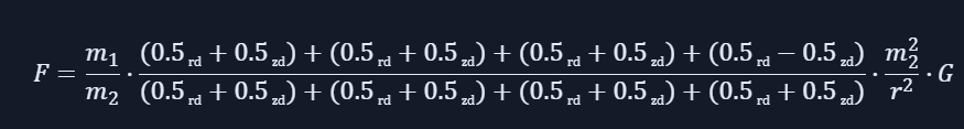 dieses Gesetz errechnet die Kraft die zwischen 2 Massen aus Materie wirkt.